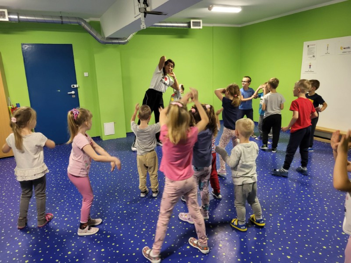 We wtorek 16 września Kreciki miały okazję uczestniczyć w zajęciach pokazowych z Zumby. Dzieciom bardzo podobała się muzyka oraz niezwykła energia towarzysząca zajęciom.