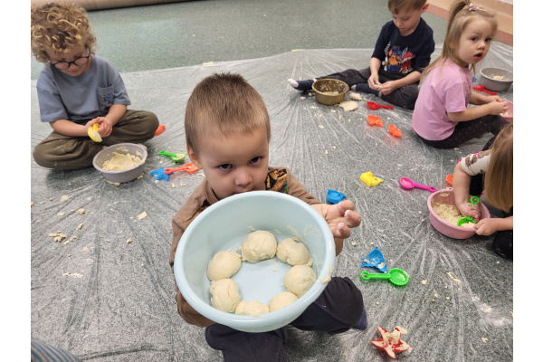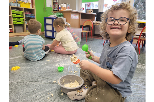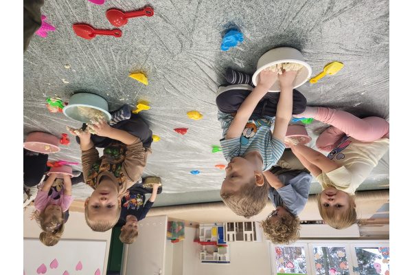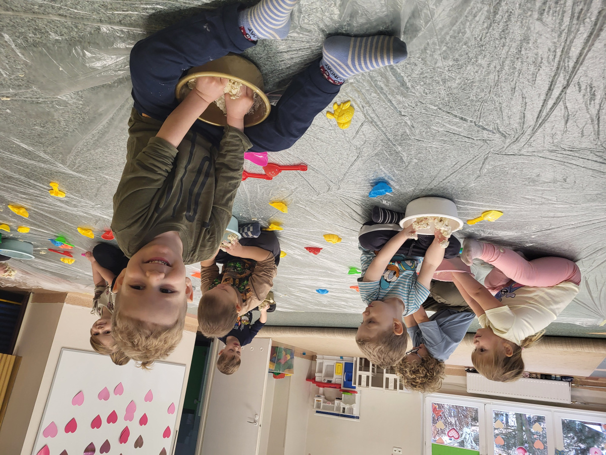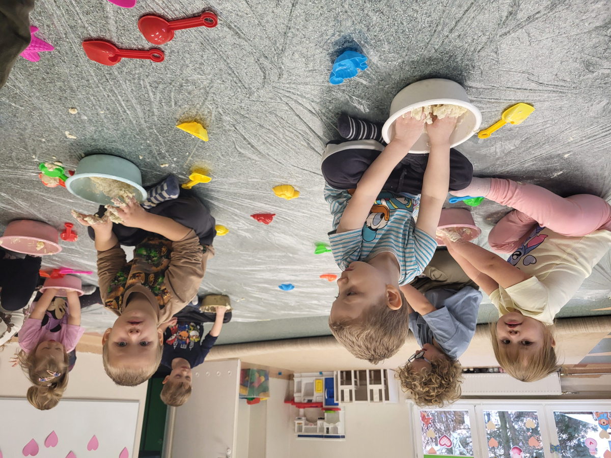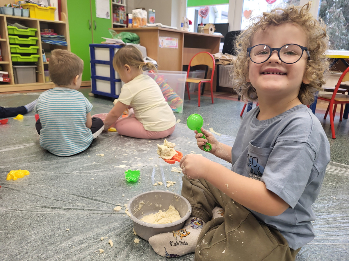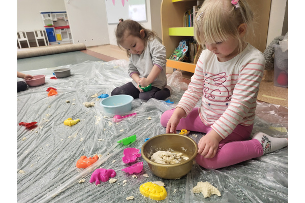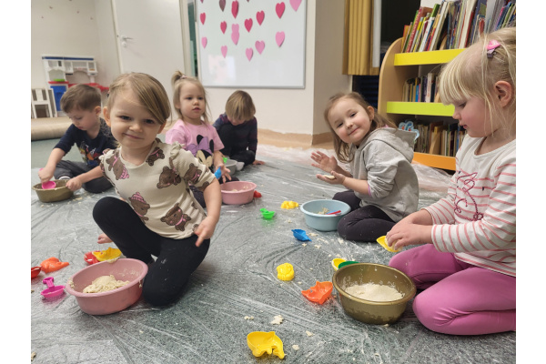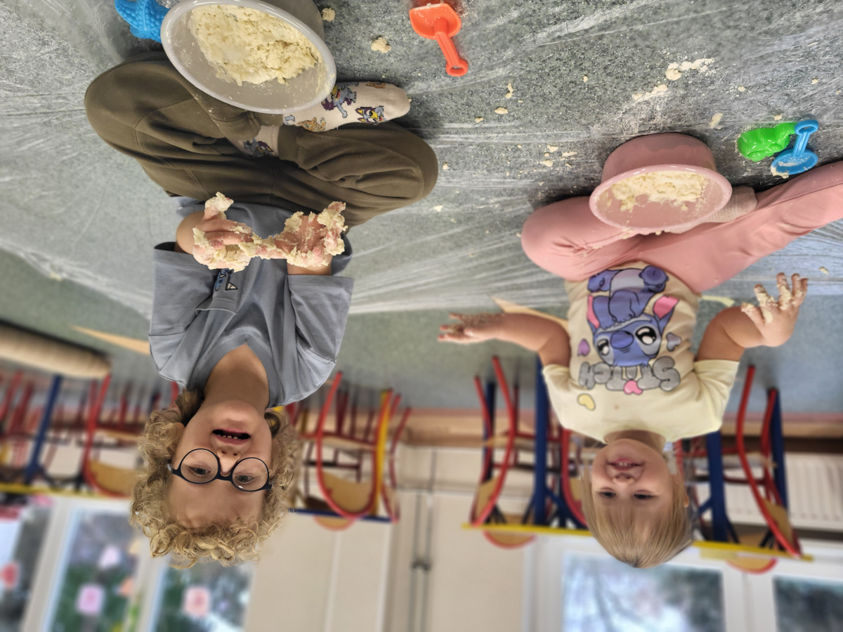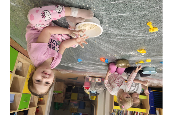 Dzieci z grupy „Motylki” uczestniczyły w zajęciach sensorycznych z wykorzystaniem masy solnej. Przedszkolaki ugniatały, przesypywały i tworzyły różne formy, korzystając z misek, łopatek i foremek. Były to zajęcia pełne radości, które rozwijały zmysły, kreatywność oraz sprawność dłoni.