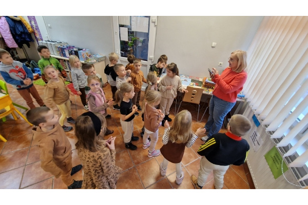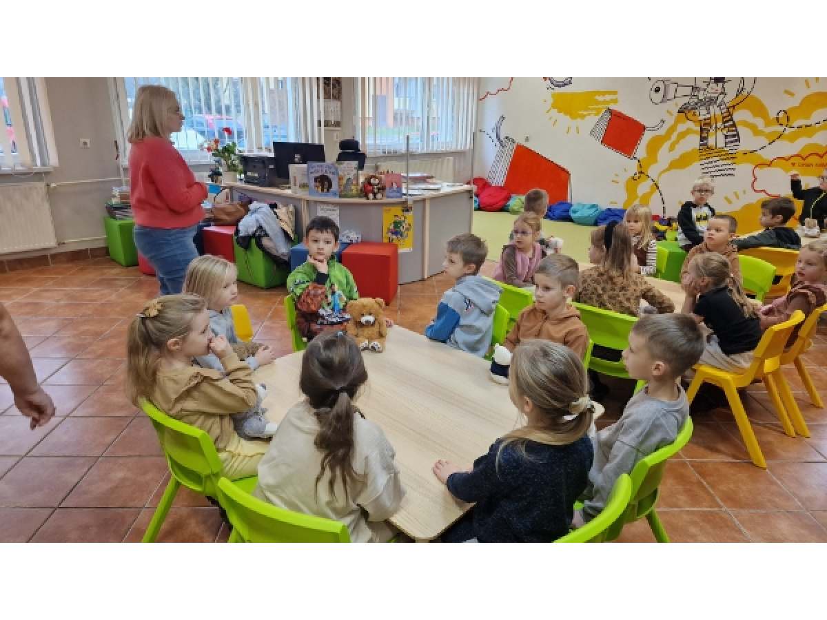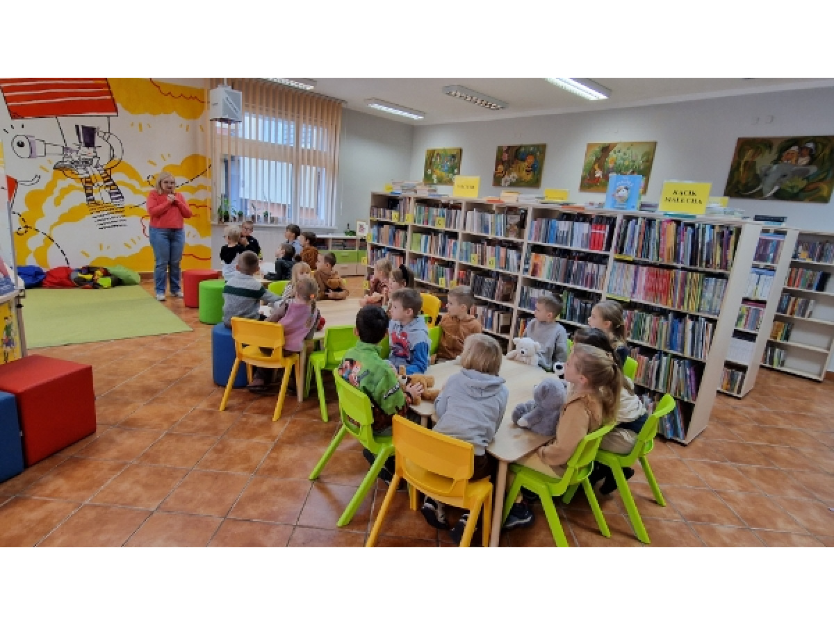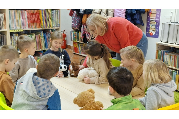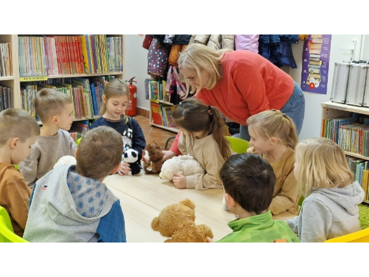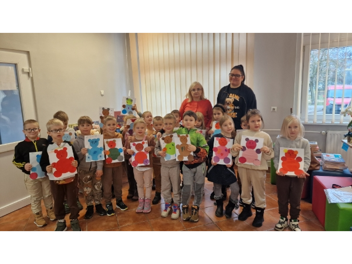 Świetliki z okazji Dnia Pluszowego Misia odwiedziły Bibliotekę, gdzie odbyły się zajęcia dotyczące tego święta. Dzieci zabrały ze sobą pluszowych przyaciół. Najpierw opowiedziały o sobie i o Misiach, następnie wysłuchały bajki o Misiu oraz zrobiły misia z kółek. Nie zabrakło również zabaw ruchowych. Na pewno jeszcze odwiedzimy Bibliotekę, bo jest tutaj super!