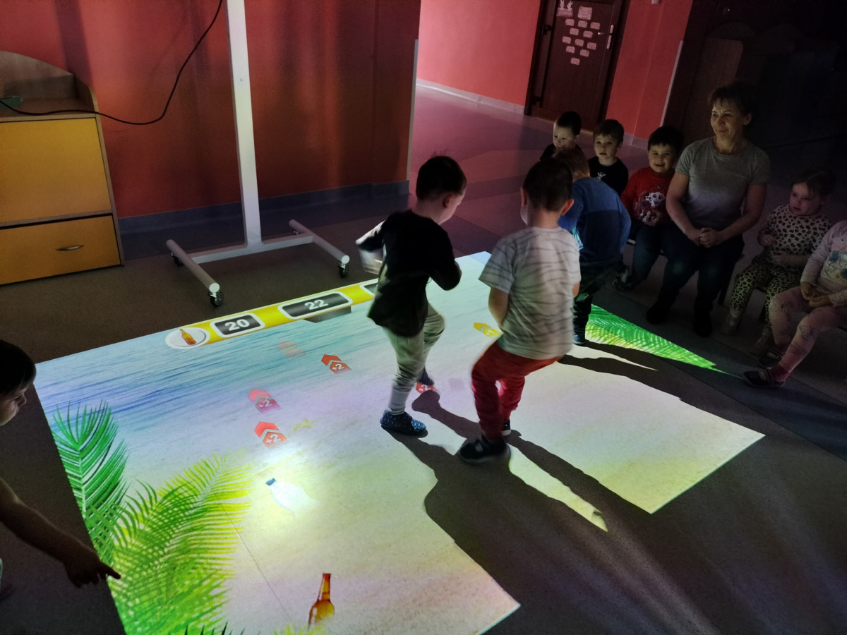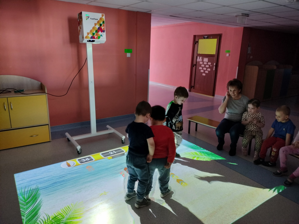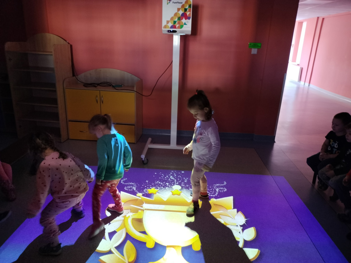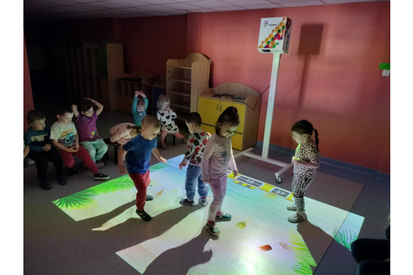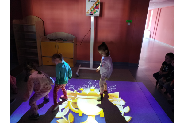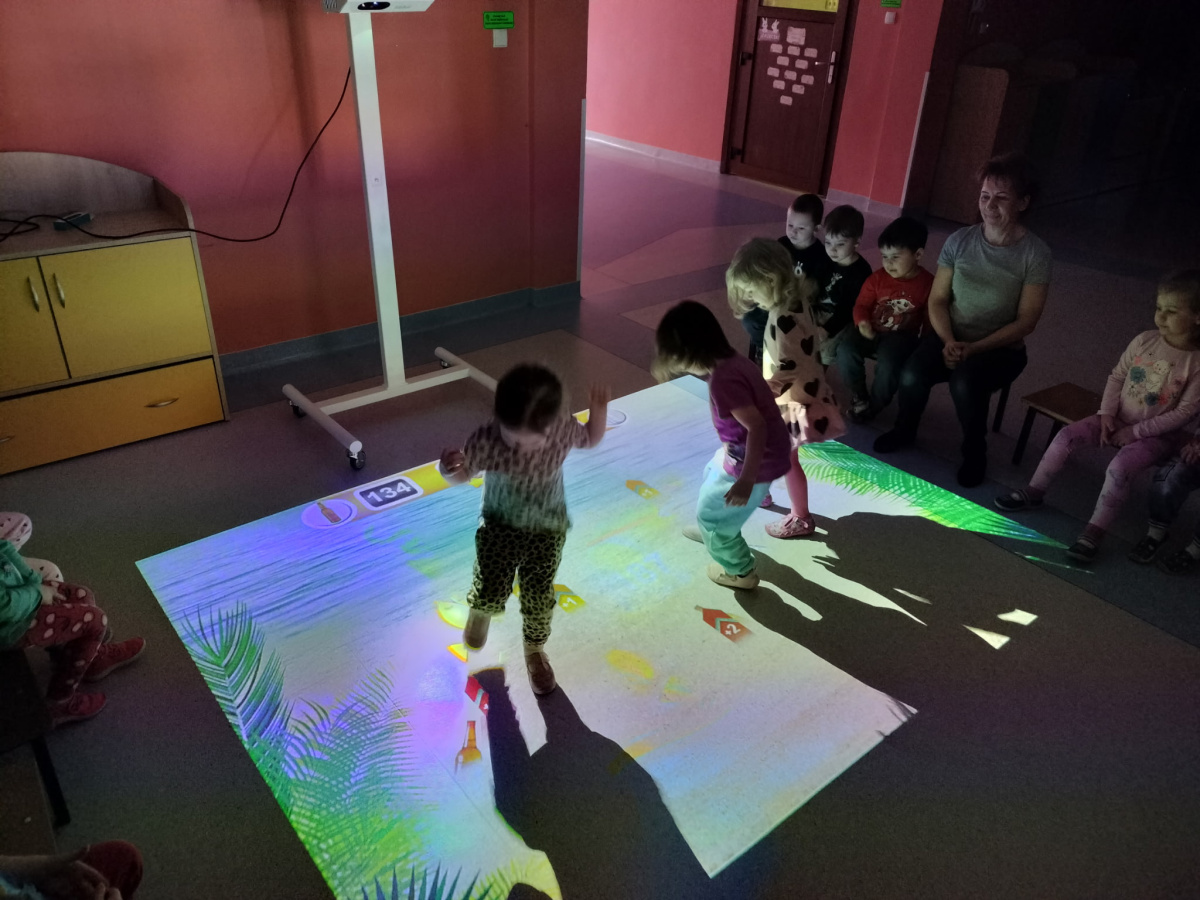 06 marca Misie udały się na zajęcia z wykorzystaniem podłogi interaktywnej FunFloor. Dzieci miały możliwość obserwować różnorodne obrazy multimedialne do wykonania za pomocą interaktywnego dywanu wyświetlanego na podłodze. Misie z radością wykonywały zadania wykorzystując ruch swojego ciała w pokonywaniu kolejnych etapów.