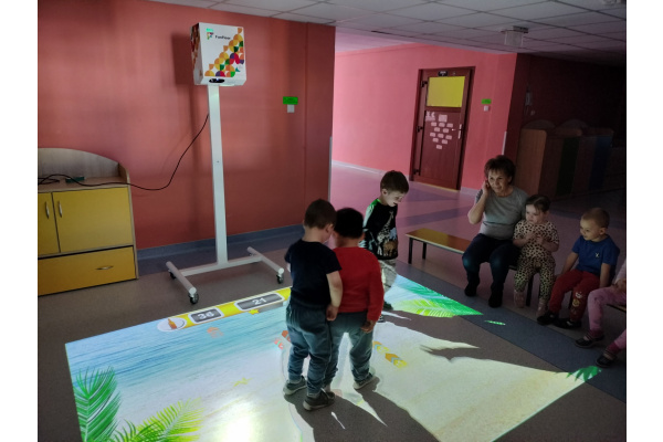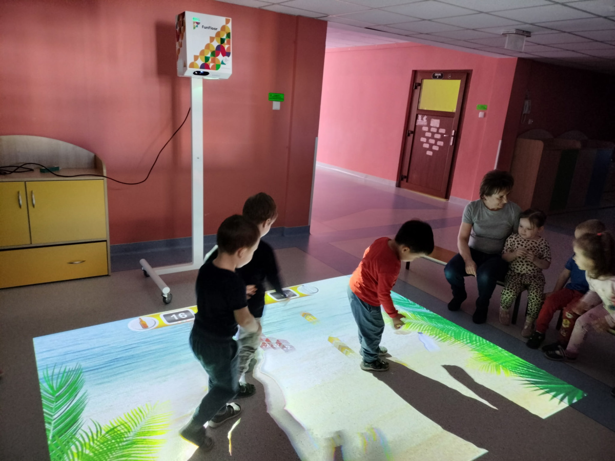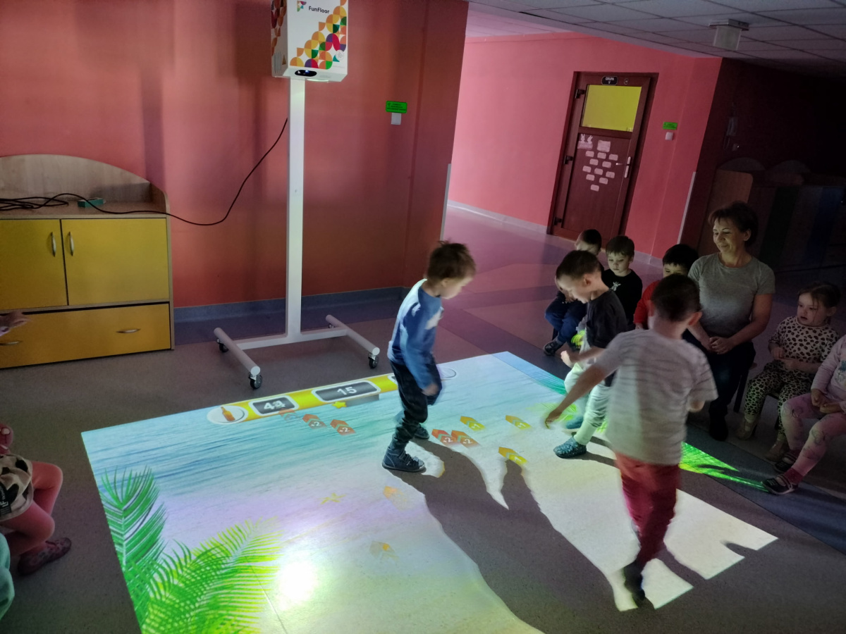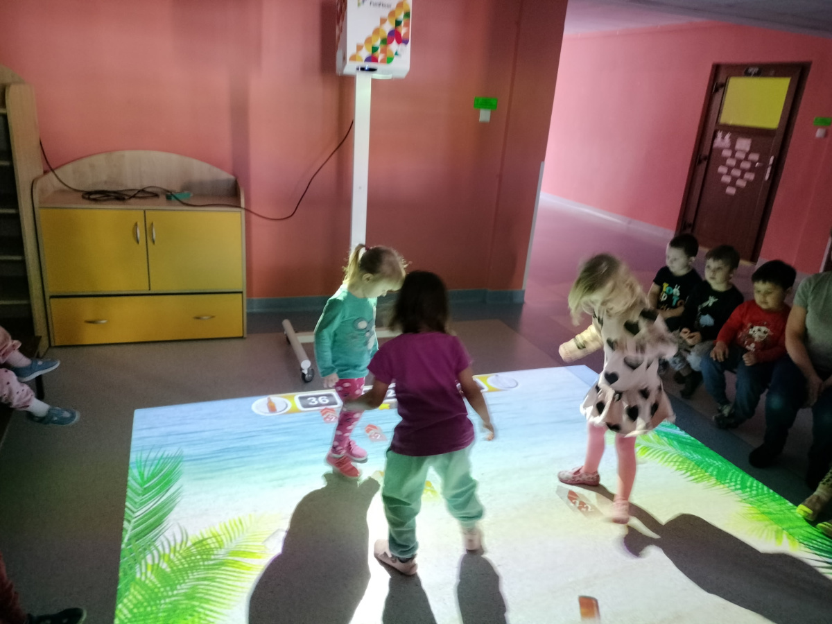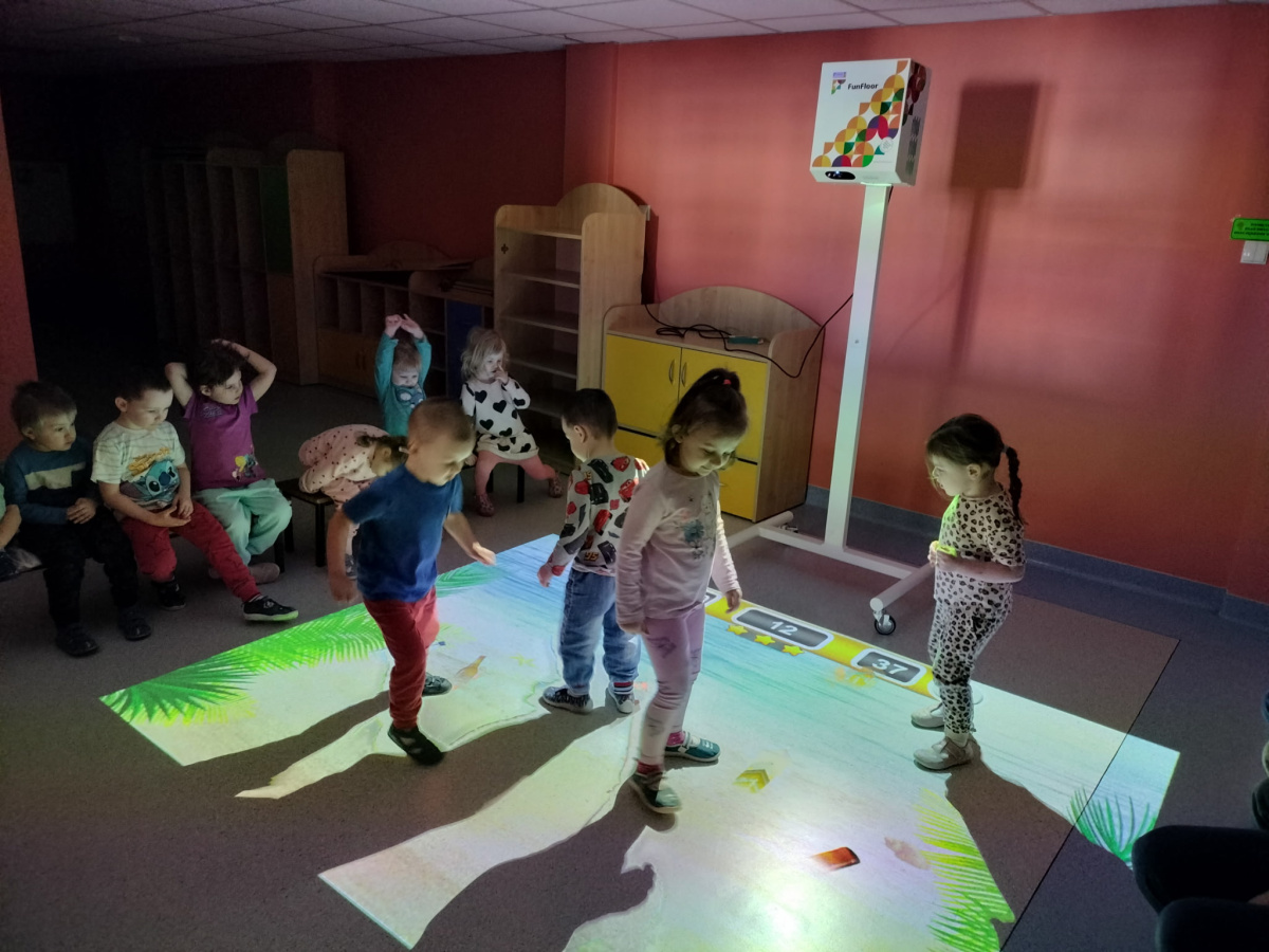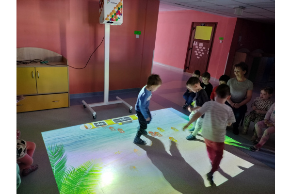 06 marca Misie udały się na zajęcia z wykorzystaniem podłogi interaktywnej FunFloor. Dzieci miały możliwość obserwować różnorodne obrazy multimedialne do wykonania za pomocą interaktywnego dywanu wyświetlanego na podłodze. Misie z radością wykonywały zadania wykorzystując ruch swojego ciała w pokonywaniu kolejnych etapów.