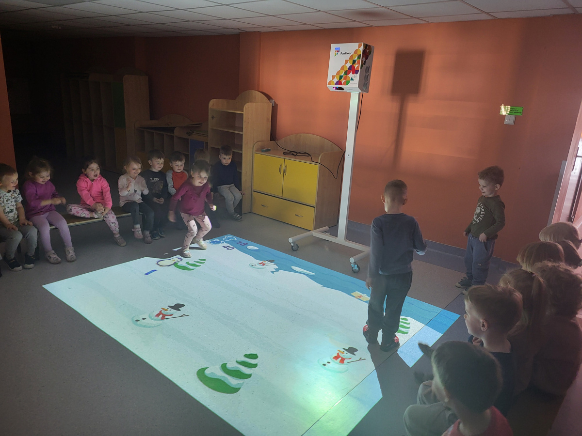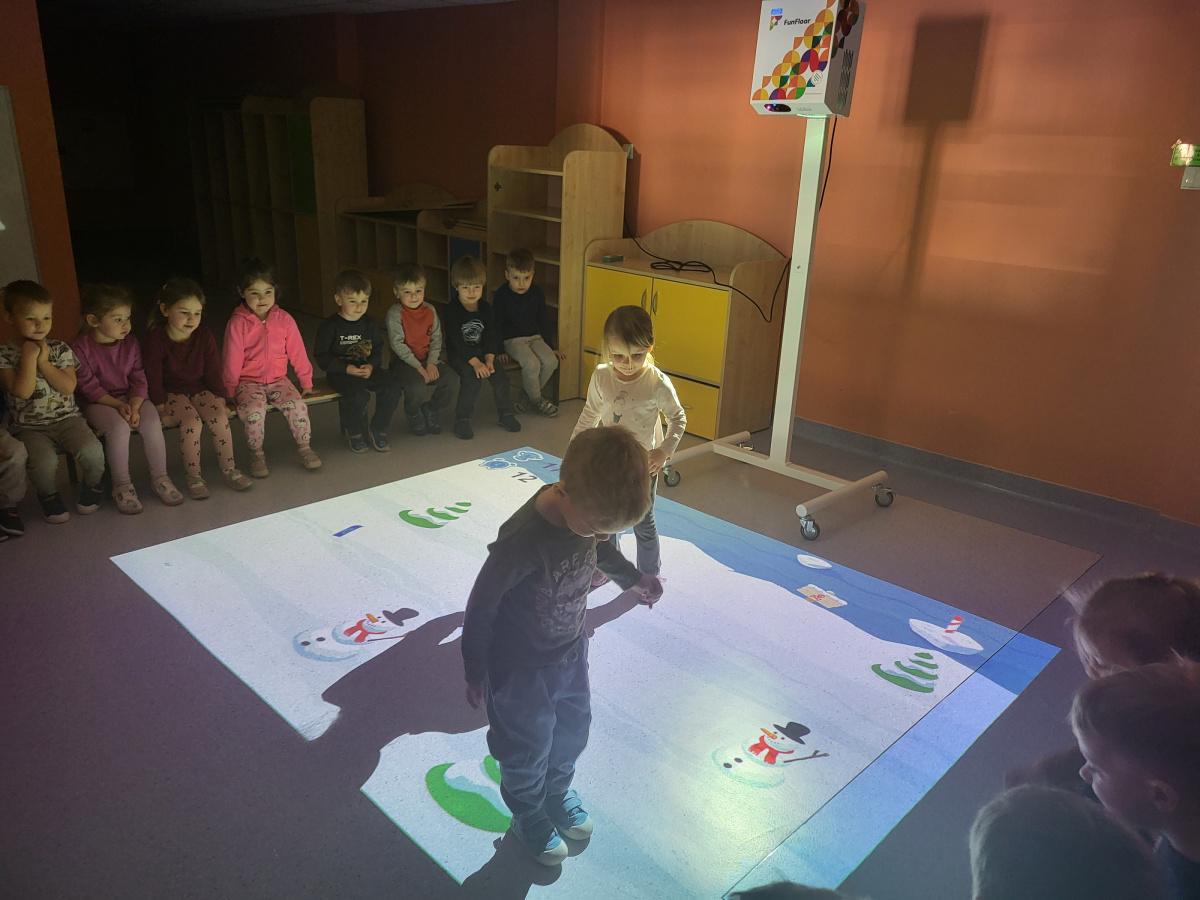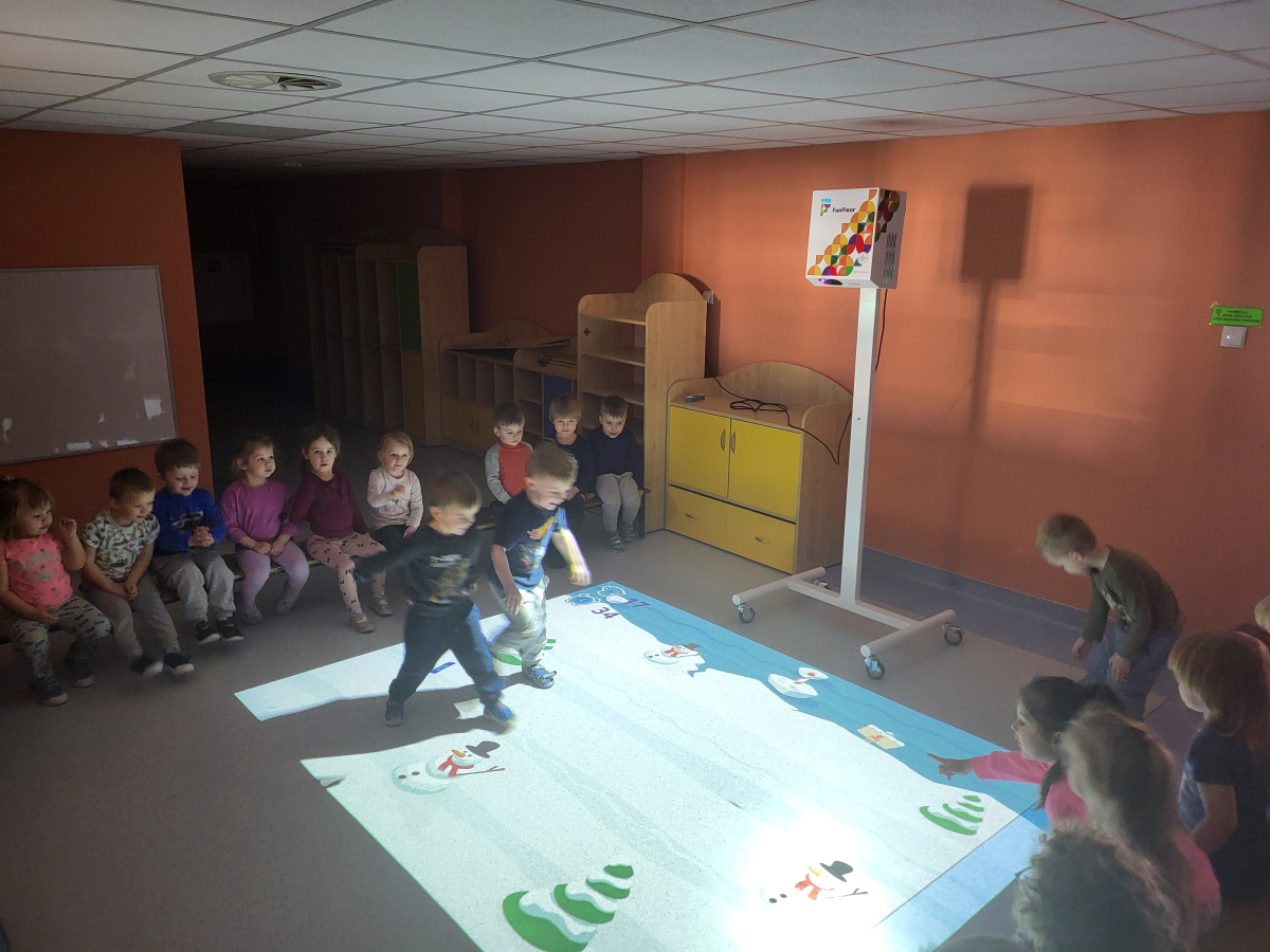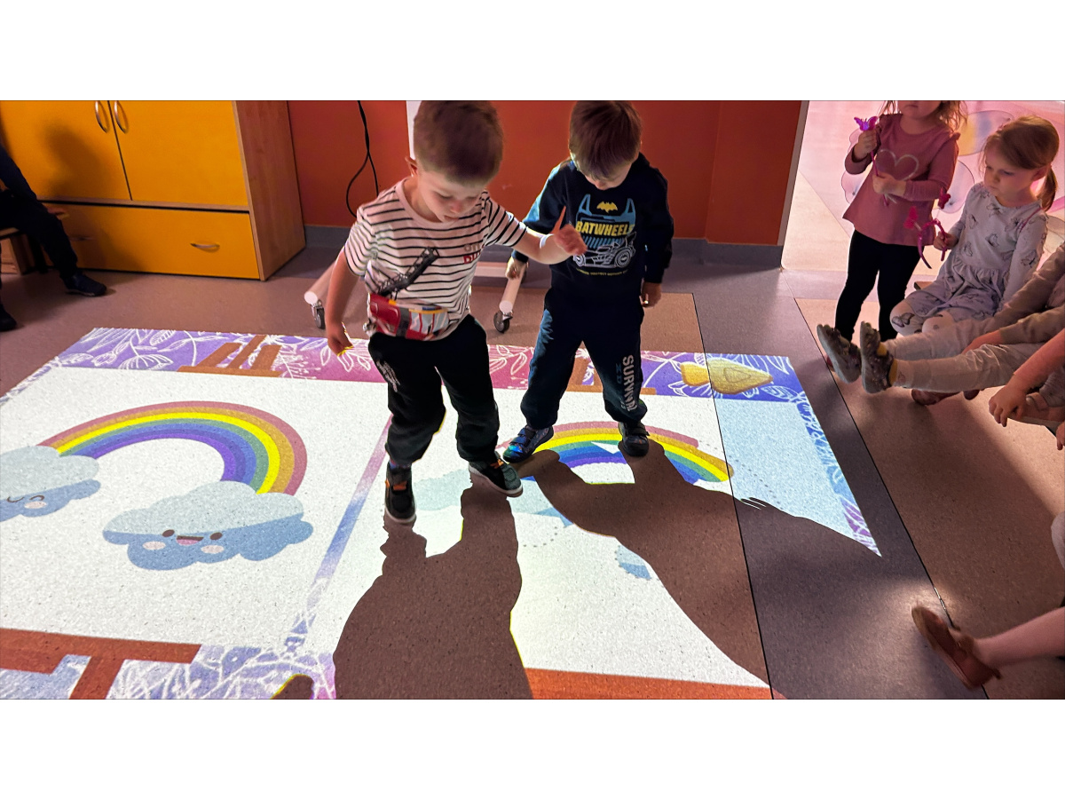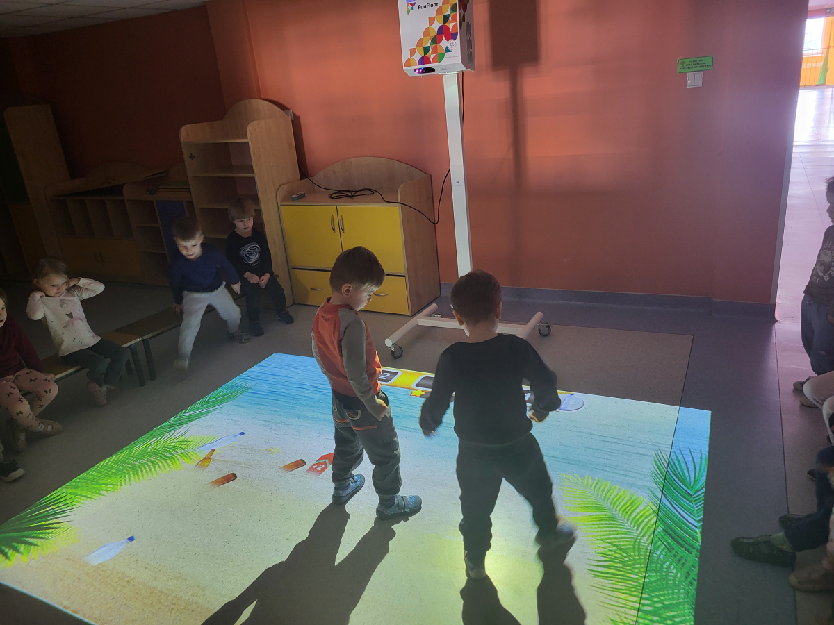 Od początku marca nasza placówka wzbogaciła się o FunFloor- interaktywny projektor, który łączy naukę z ruchem i zabawą. Dzieci z grupy „Motylki” uczestniczą w tych zajęciach w każdy piątek, rozwijając logiczne myślenie oraz motorykę dużą poprzez różnorodne gry i aktywności. To wyjątkowy czas, który sprawia przedszkolakom wiele radości i jednocześnie pozwala im zdobywać nowe umiejętności.