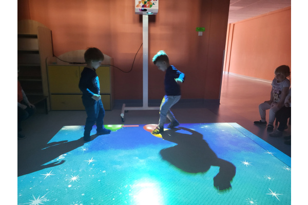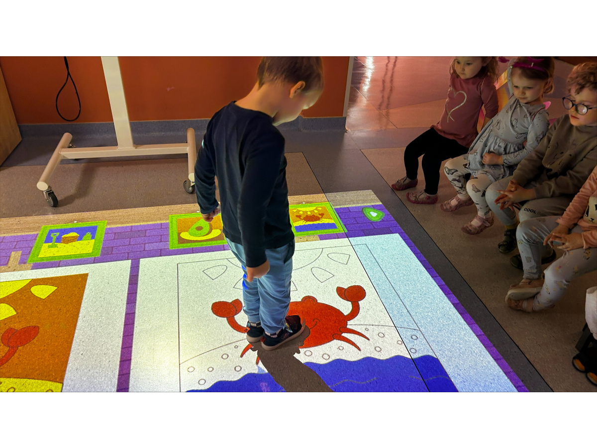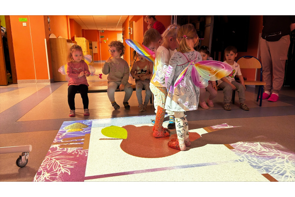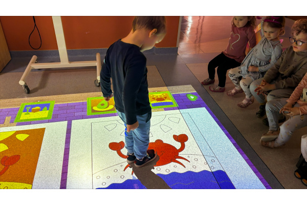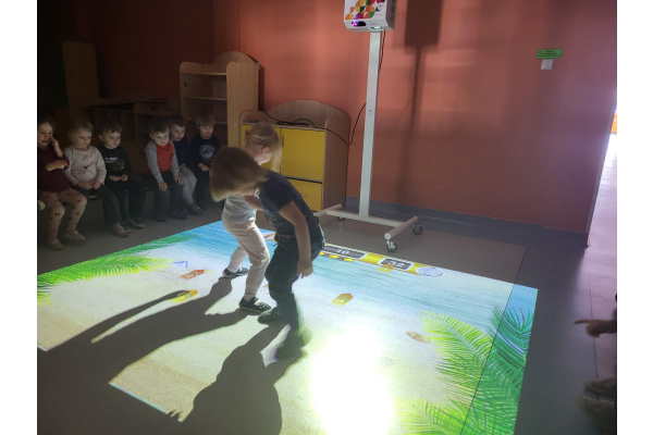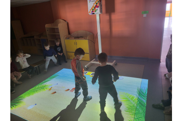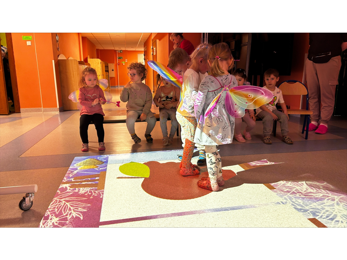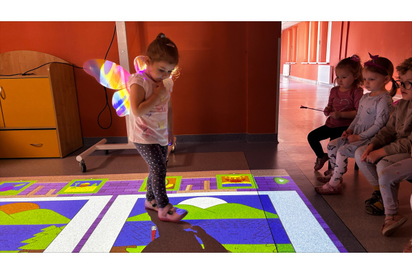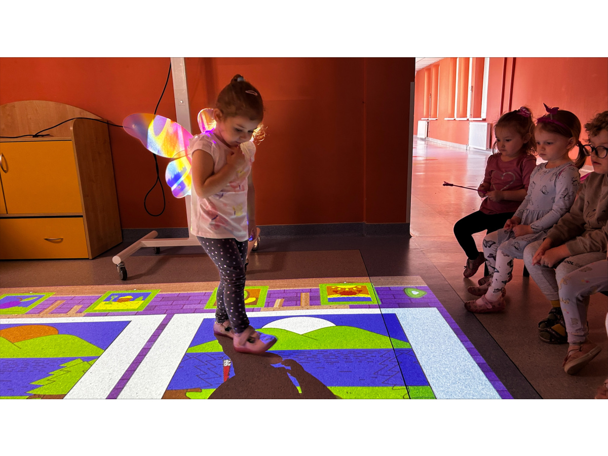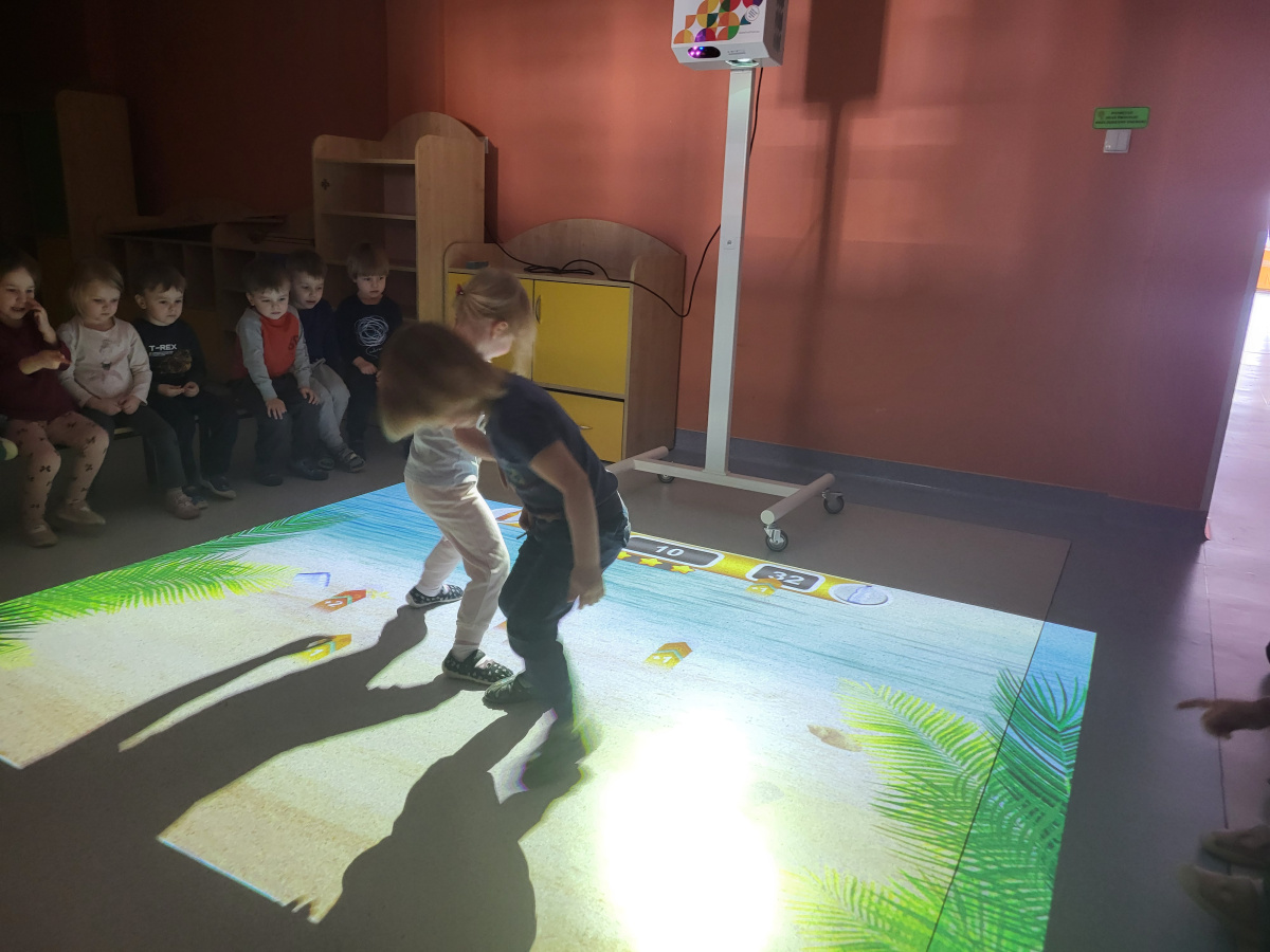 Od początku marca nasza placówka wzbogaciła się o FunFloor- interaktywny projektor, który łączy naukę z ruchem i zabawą. Dzieci z grupy „Motylki” uczestniczą w tych zajęciach w każdy piątek, rozwijając logiczne myślenie oraz motorykę dużą poprzez różnorodne gry i aktywności. To wyjątkowy czas, który sprawia przedszkolakom wiele radości i jednocześnie pozwala im zdobywać nowe umiejętności.