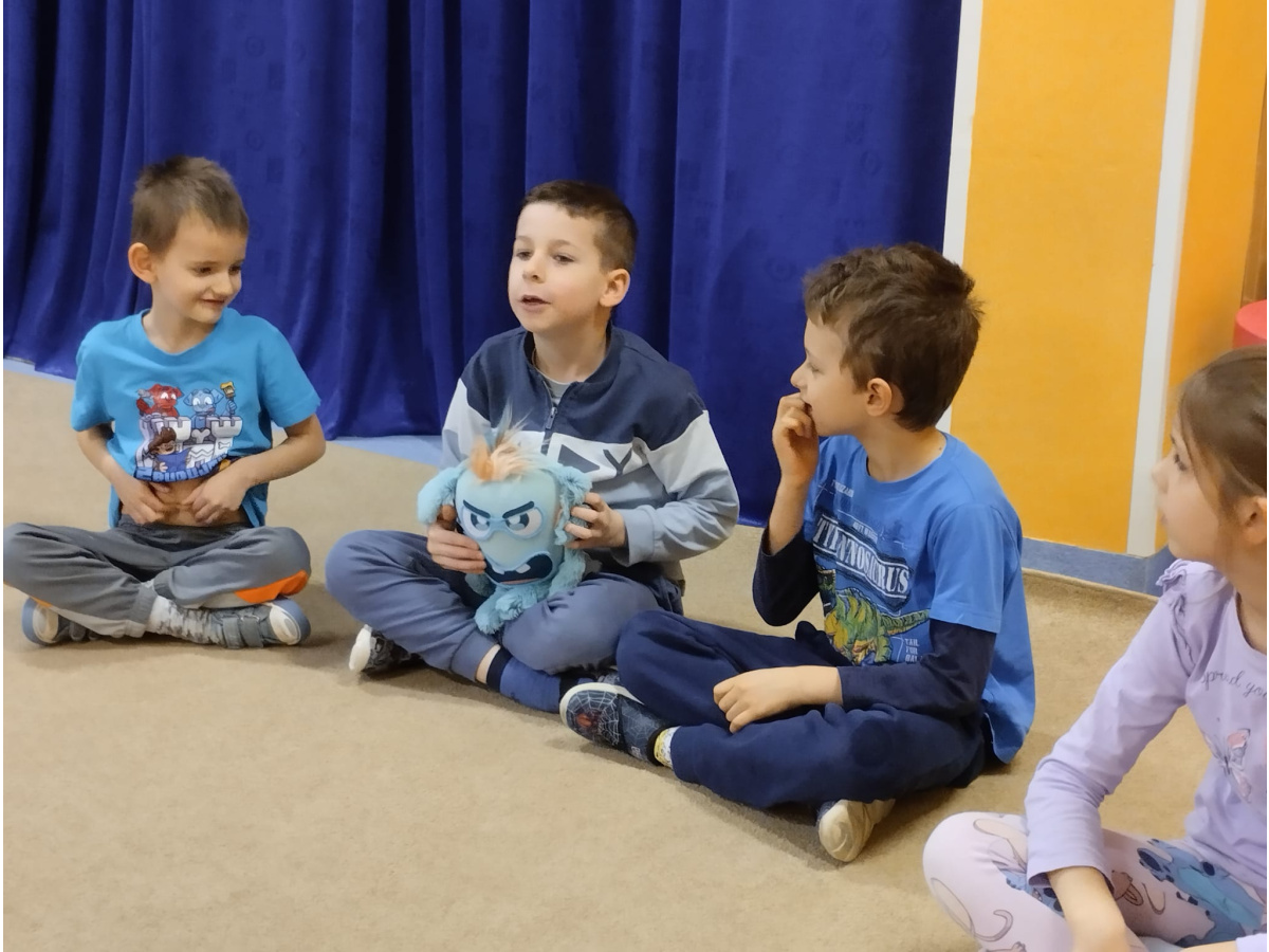13. stycznia w naszej grupie odbyły się kolejne zajęcia prowadzone przez panią psycholog. Tym razem temat brzmiał "Burzliwe Morze Złości". Dzieci poznawały sposoby radzenia sobie ze złością. Jak zawsze z dużym zaangażowaniem uczestniczyły w proponowanych działaniach, słuchały opowiadania, podawały sytuacje, kiedy może pojawić się złość. Przedszkolaki wykonały także gniotki, jako jeden z pomysłów radzenia sobie z tą emocją.