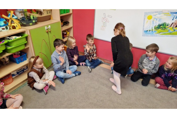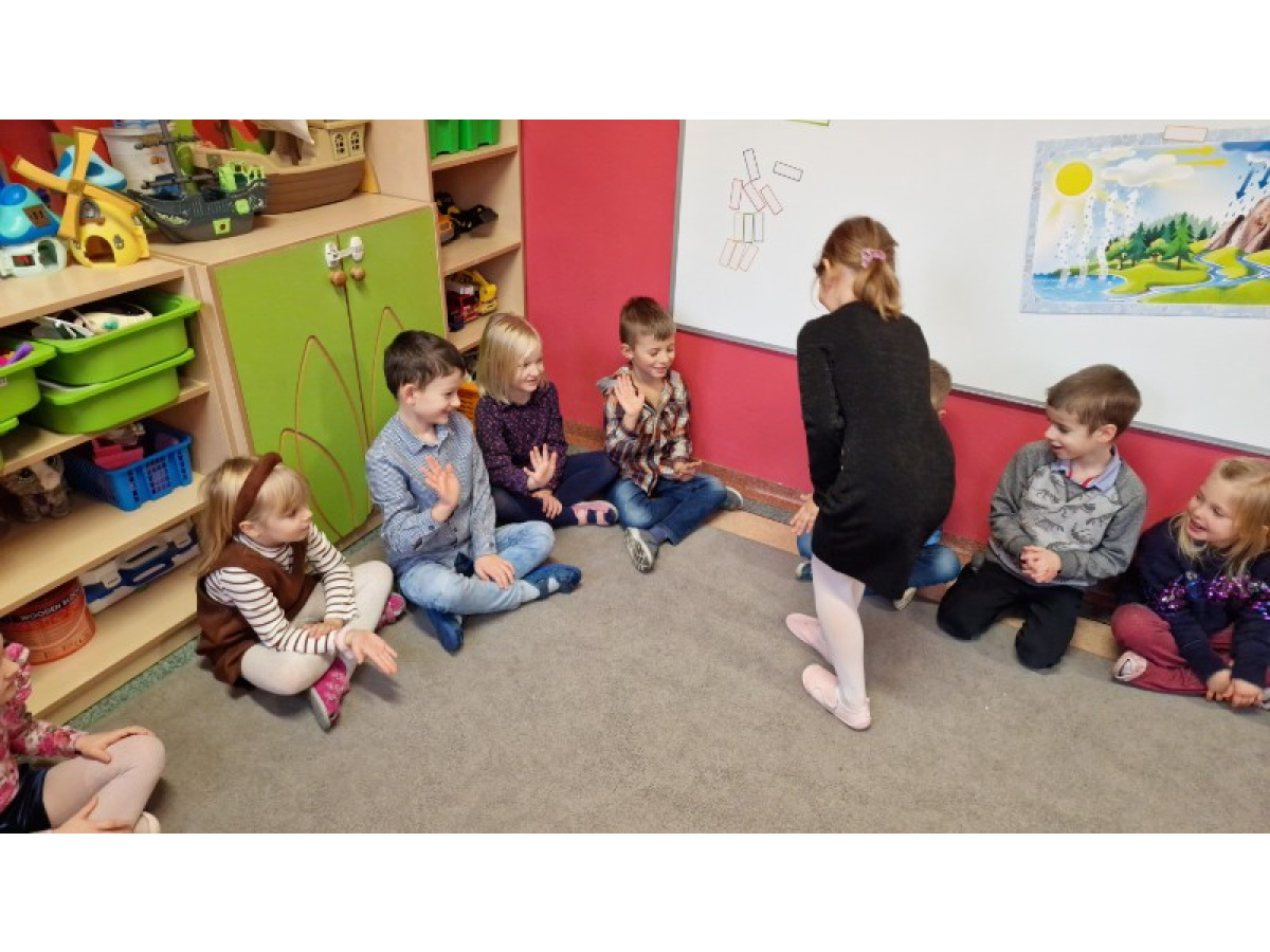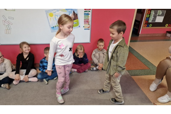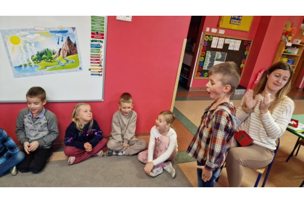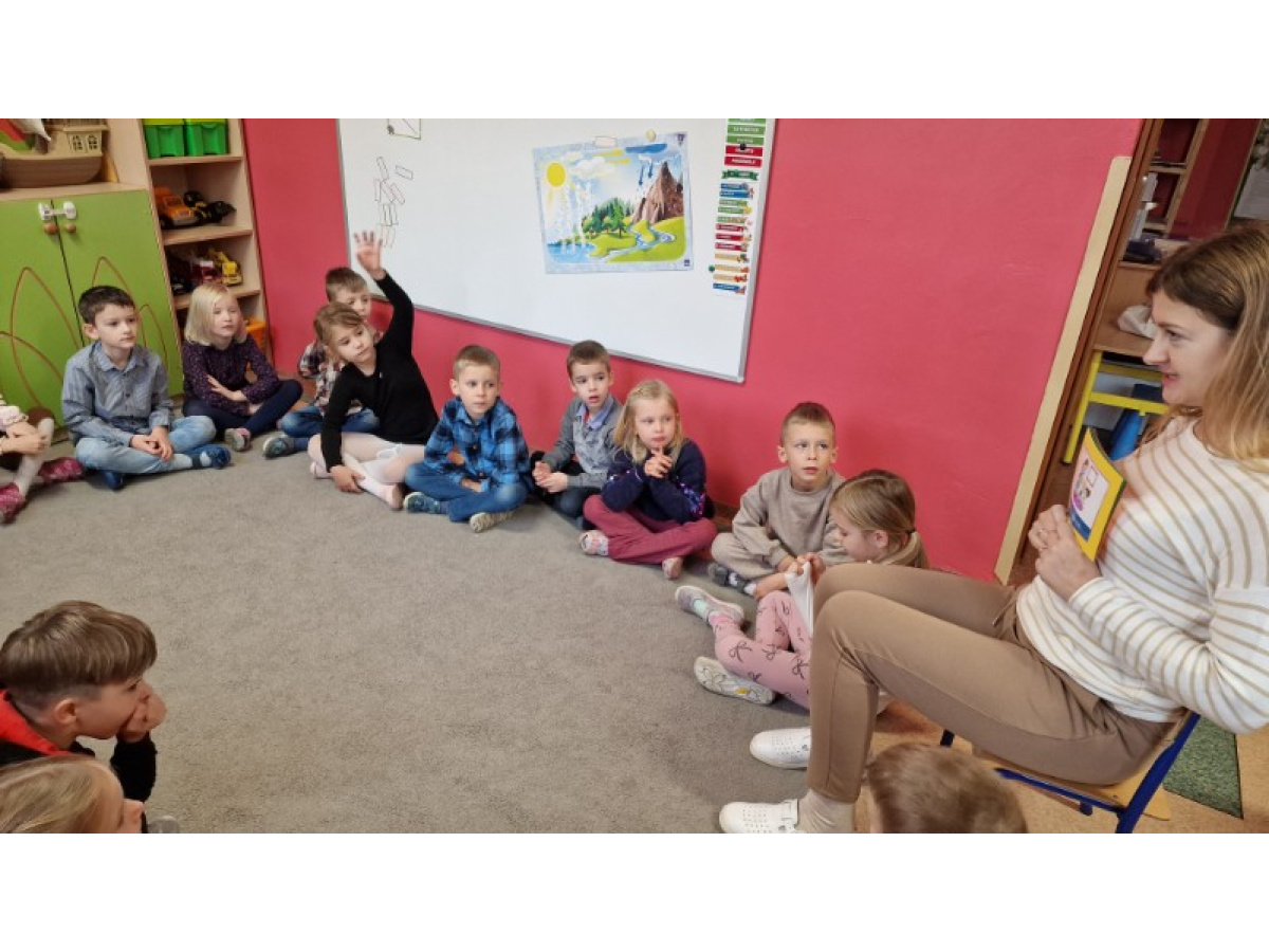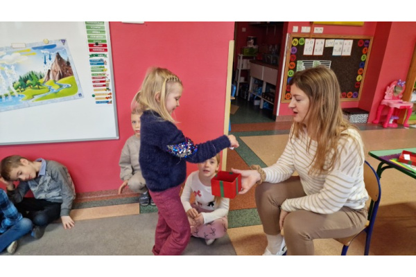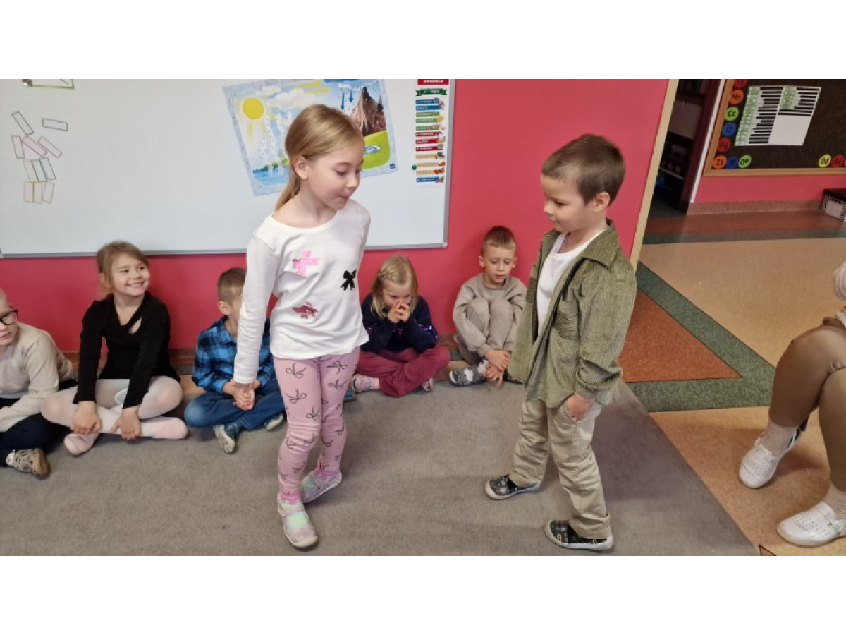 Pani psycholog w naszej grupie prowadzi co 2 tygodnie, zajęcia z innowacji o emocjach. Nie zabrakło ustalenia zasad panujących podczas zajęć, a potem przyszedł czas na losowanie zadania z prezentu i wykonywanie go. Dziecieom to zadanie przyniosło wiele radości i nauczyło lepiej rozumieć emocję.