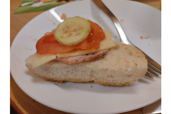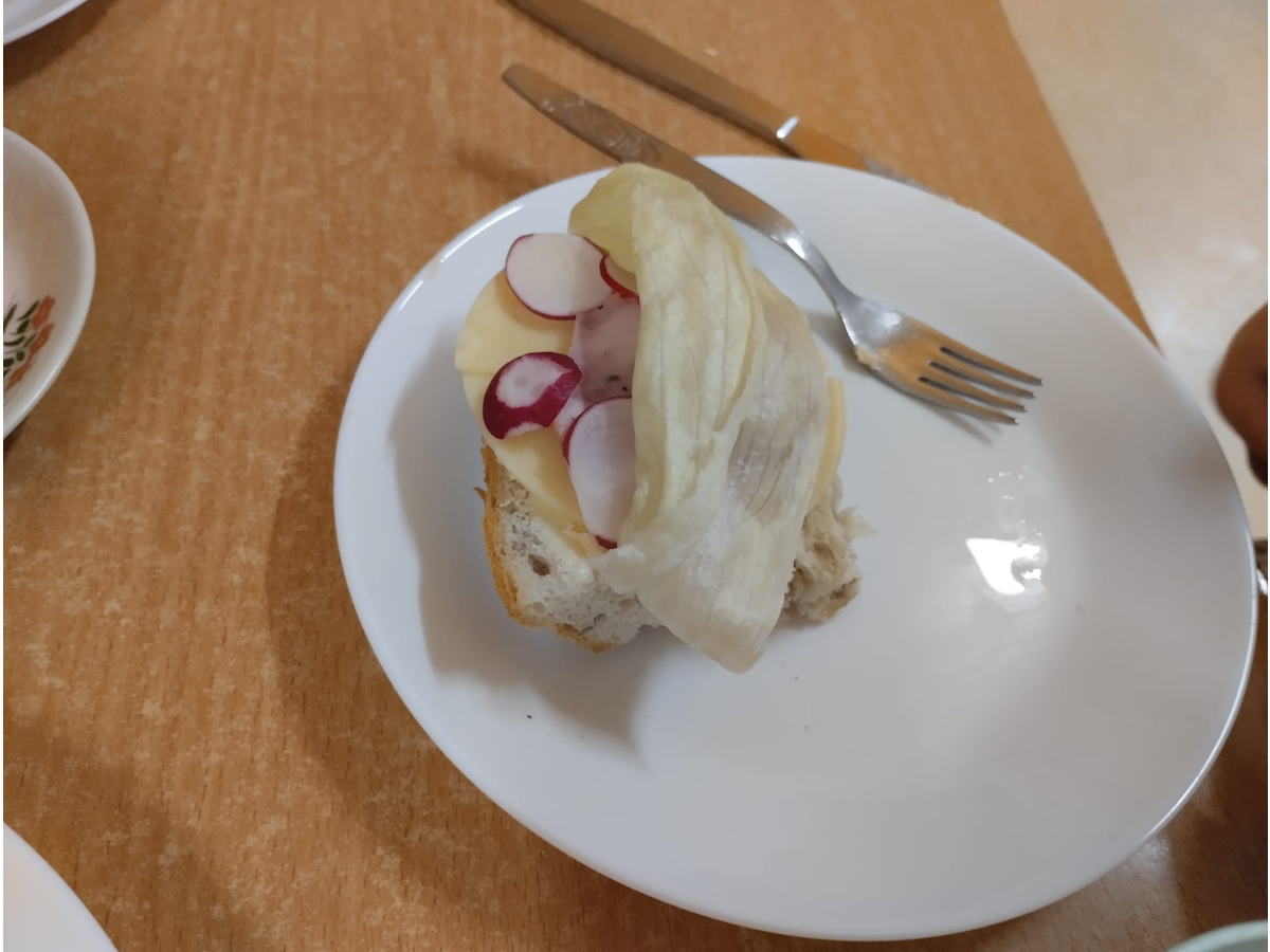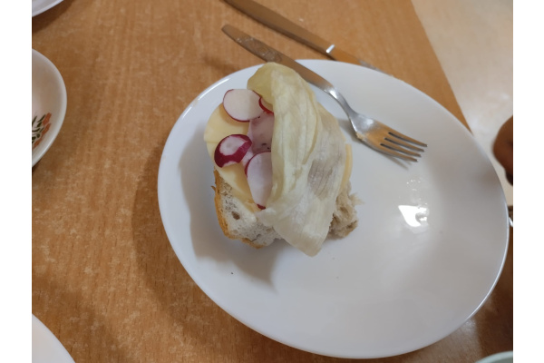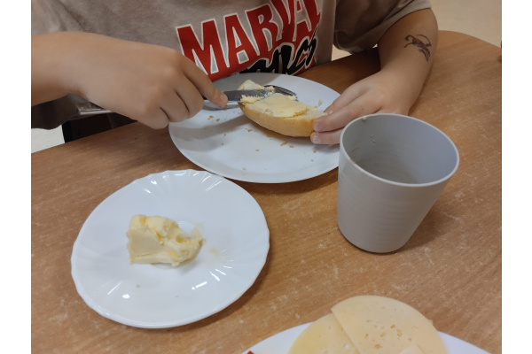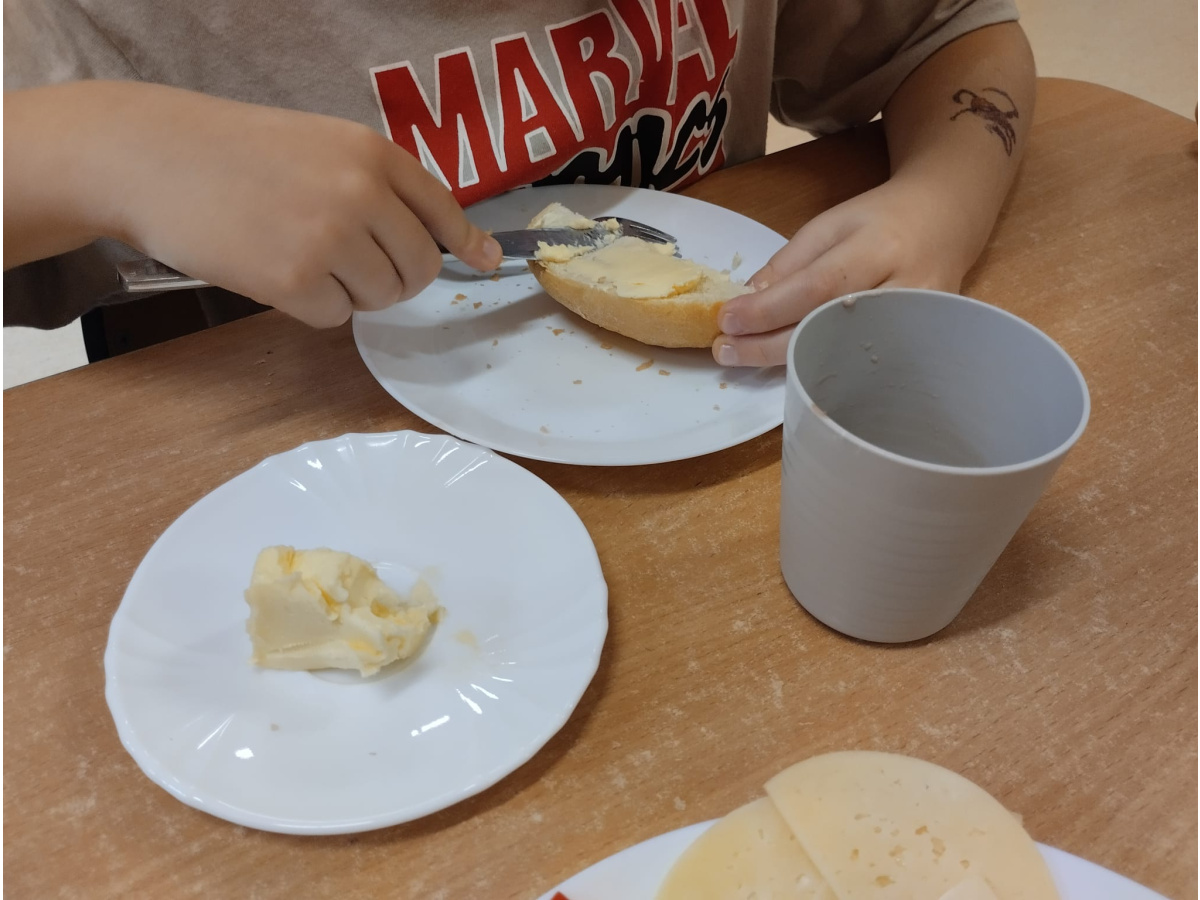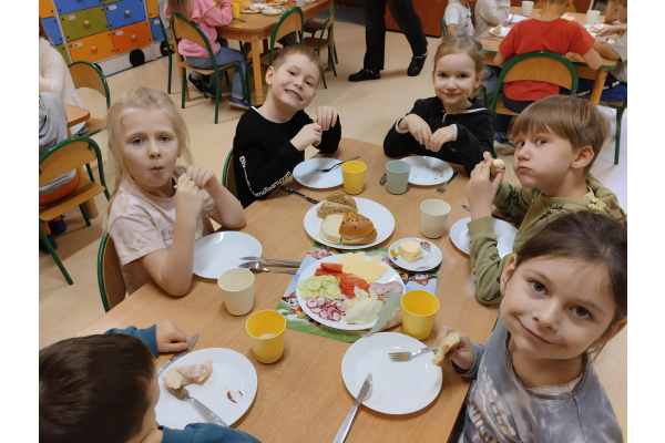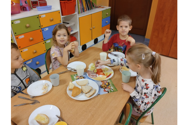 5. listopada, kolejny już raz dzieci miały okazję samodzielnie przygotować śniadanie. Z apetytem zjadły kanapki z szynką, serem i wybranymi przez siebie warzywami. Doskonaliły umiejętność posługiwania się nożem w bezpieczny sposób i dokonywania samodzielnych decyzji. Dzieci poznawały także walory odżywcze wybranych produktów oraz ich wpływu na zdrowie.