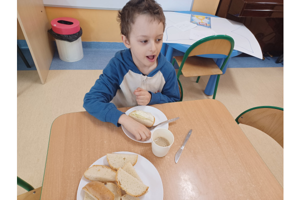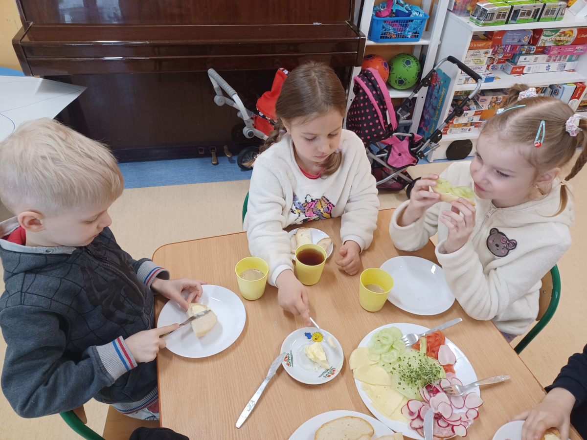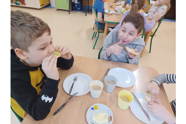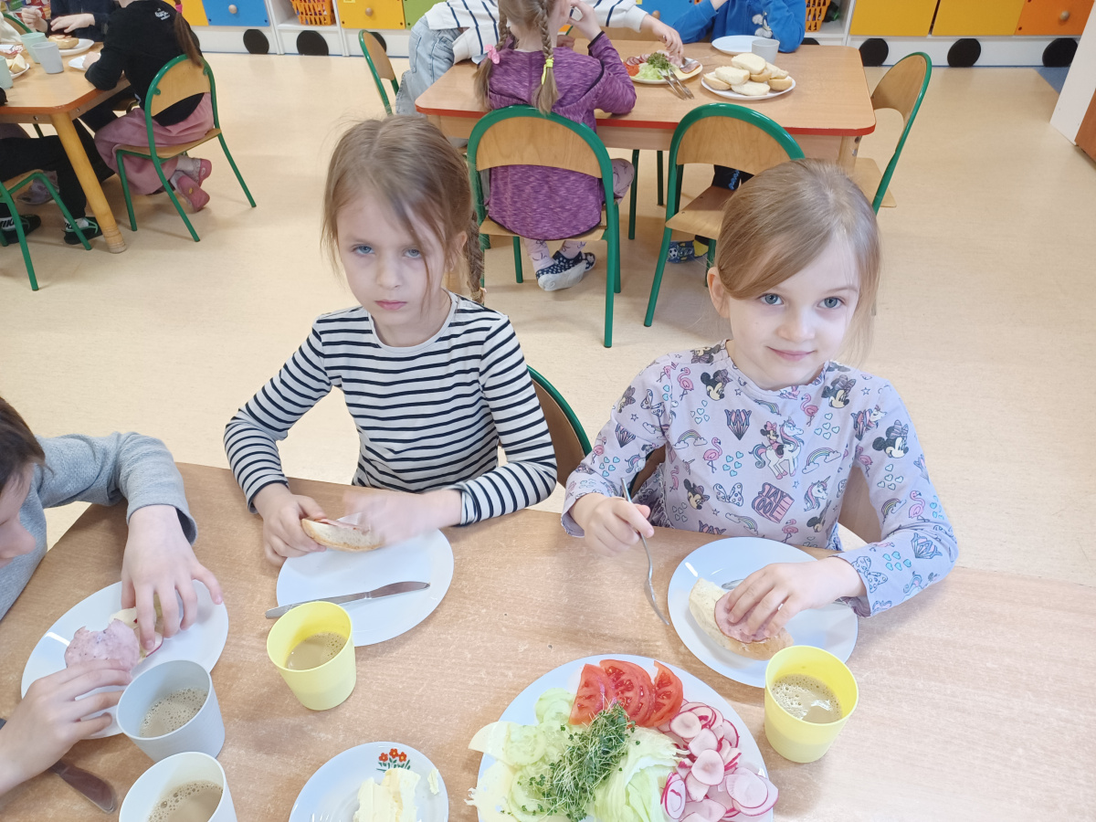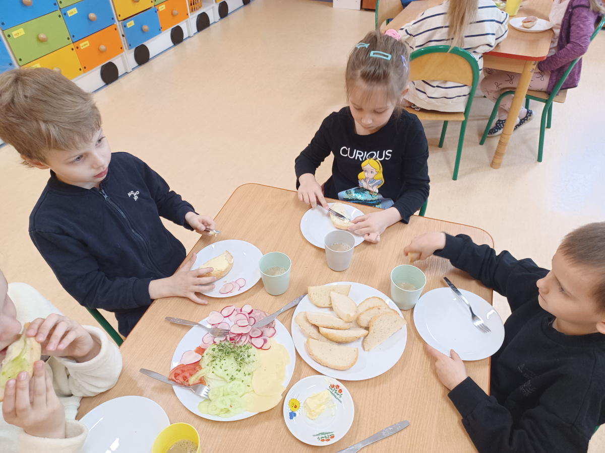 Na początku każdego miesiąca w naszym przedszkolu mamy śniadanie, które dzieci przygotowują sobie same. Żabki uwielbiają takie śniadanka i kolorowe, pyszne kanapki!