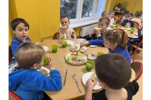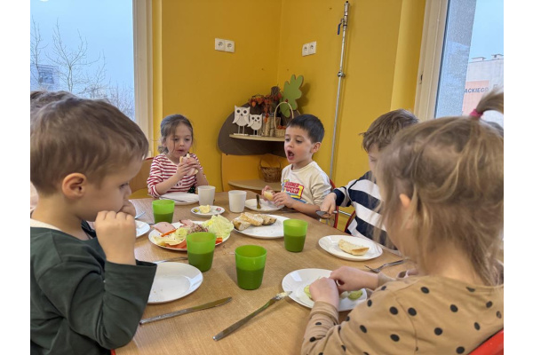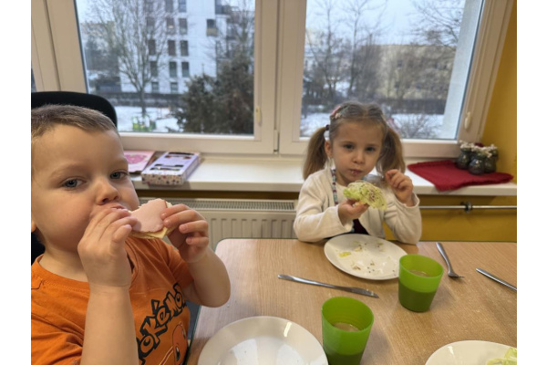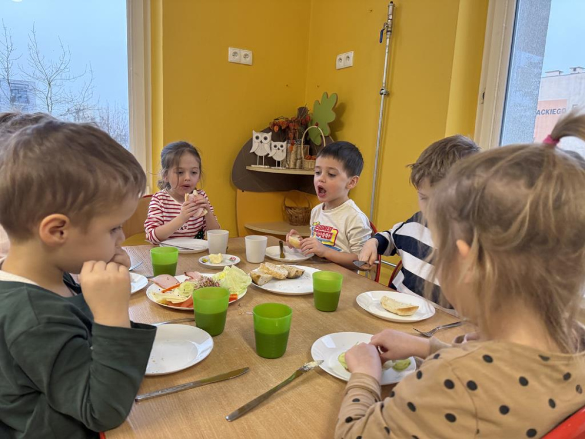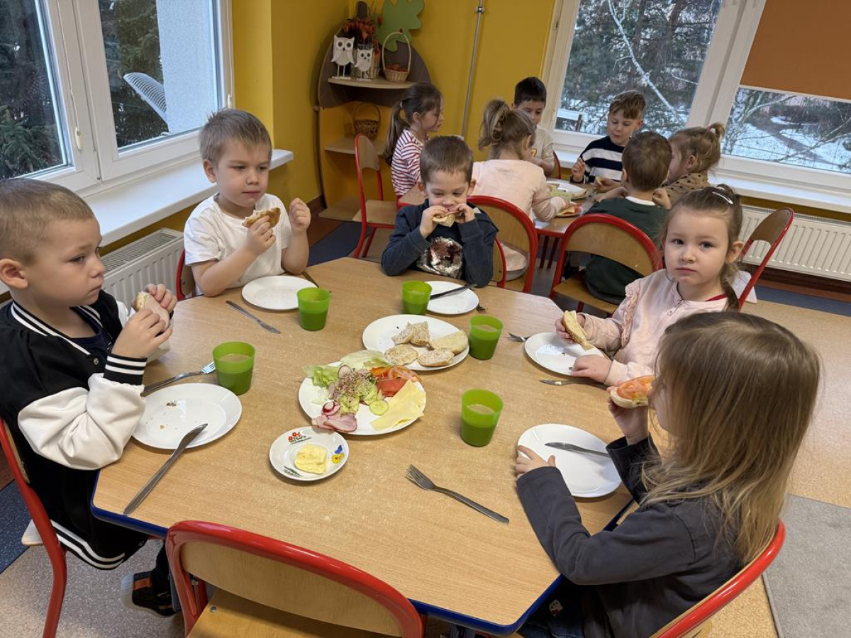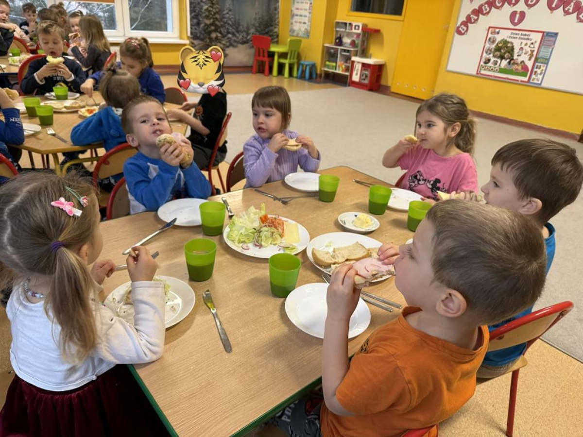 W środę 14 stycznia nasze przedszkolaki miały możliwość samodzielnego skomponowania zdrowych kanapek. Dzięki temu, że dzieci samodzielnie działają, chętniej też zjadają, a przy okazji utrwalają zdrowe nawyki żywieniowe. Na kanapkach oprócz sera i wędlin pojawiały się pomidory, ogórki, rzodkiewka, papryka, sałata, a także kiełki.
