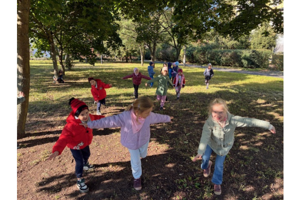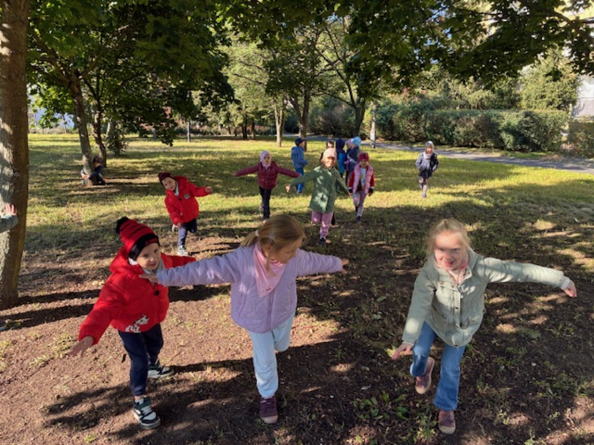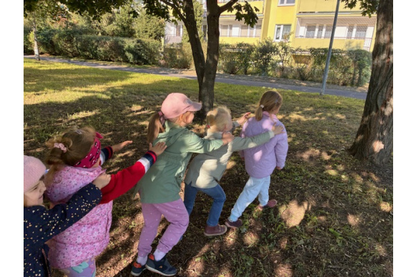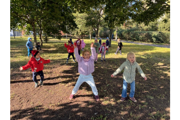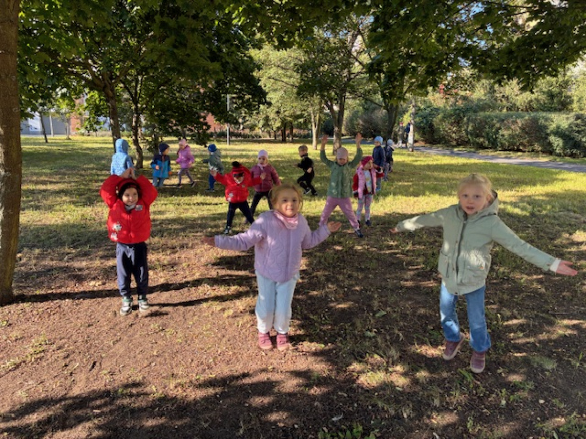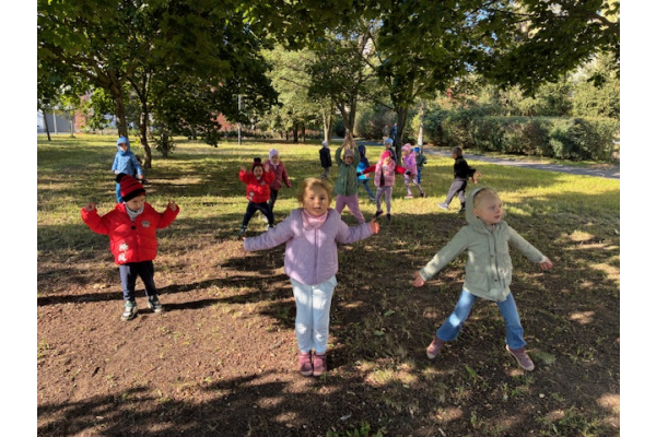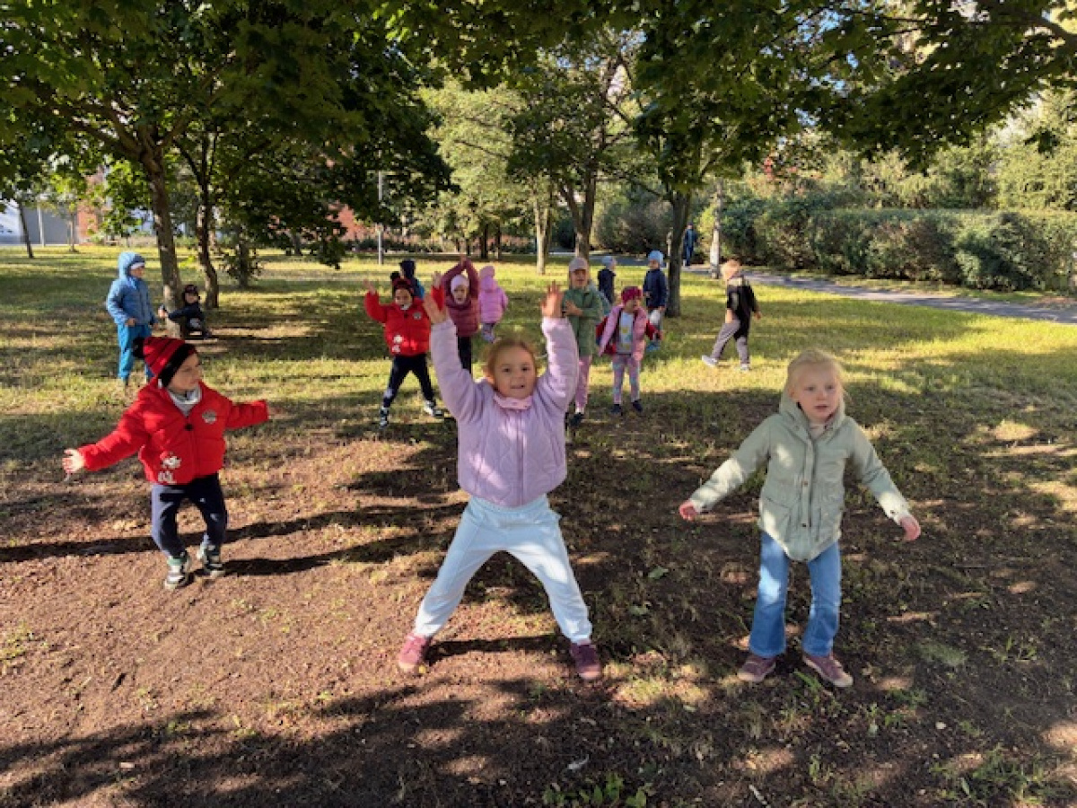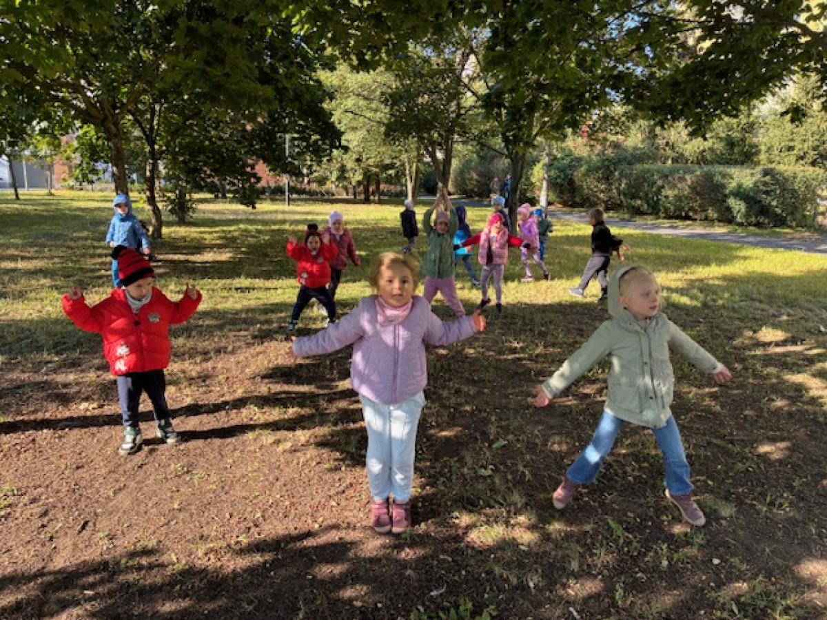Dzień zdrowego śniadania w przedszkolu spodobał się dzieciom, ponieważ mogły same przygotować kanapki. „Kolorowe piramidy” rosły na talerzach. Zabawy ruchowe w ogrodzie przedszkolnym, to ulubione zajęcie przedszkolaków.