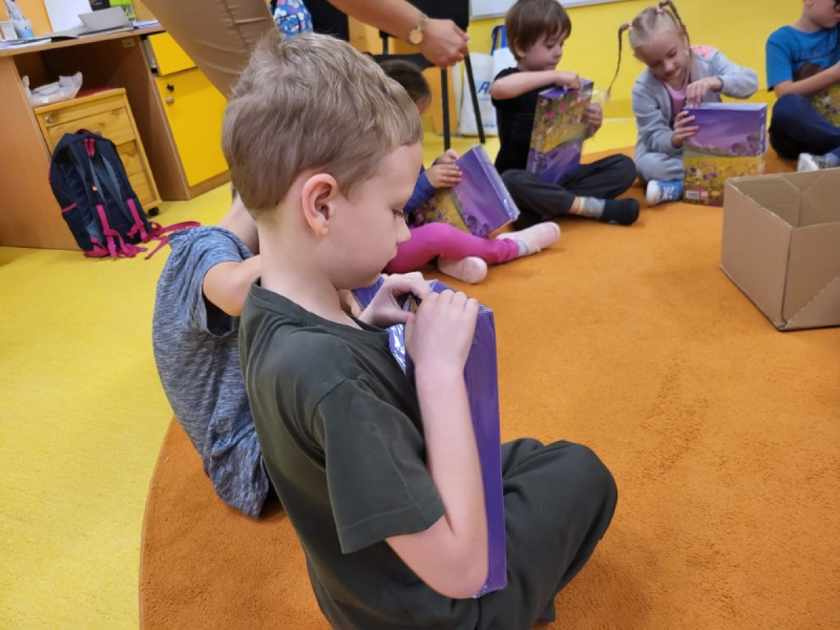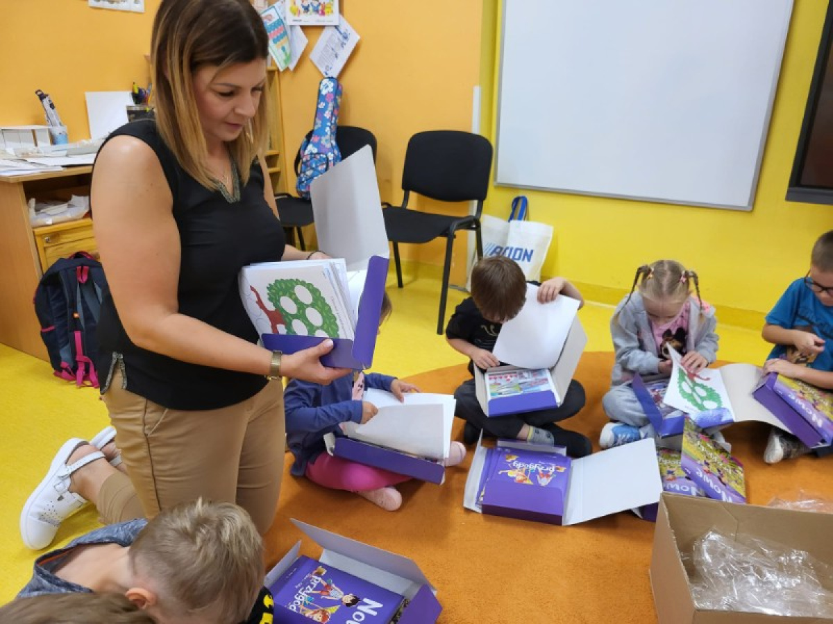 W drugim tygodniu września Kreciki otrzymały dwie duże paczki. Po ich otwarciu okazało się, że w środku znajdują są książki z kartami pracy. Każde obecne dziecko samodzielnie rozpakowało swój pakiet edukacyjny oraz obejrzało jego zawartość. Zapowiada się nam pracowita zerówka z Olkiem i Adą.