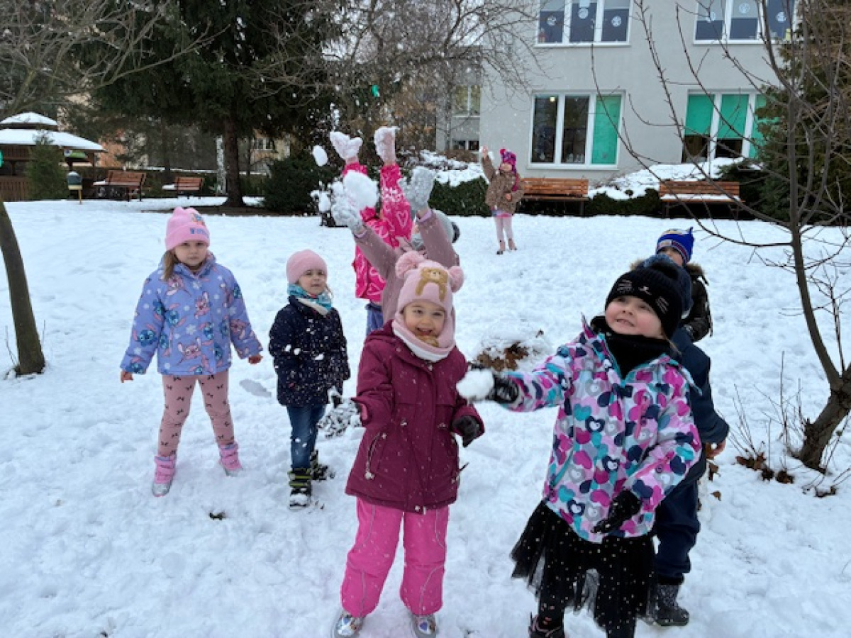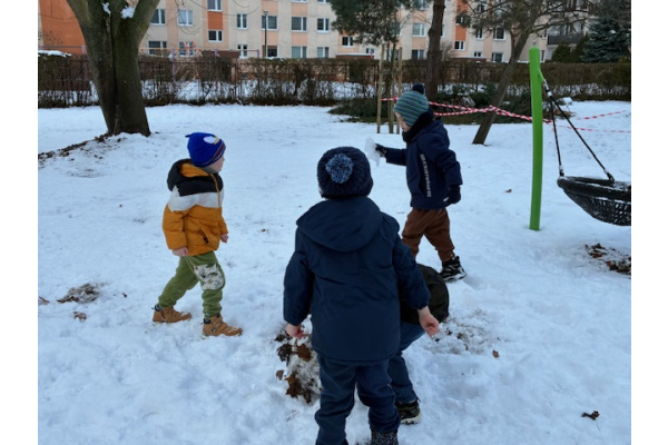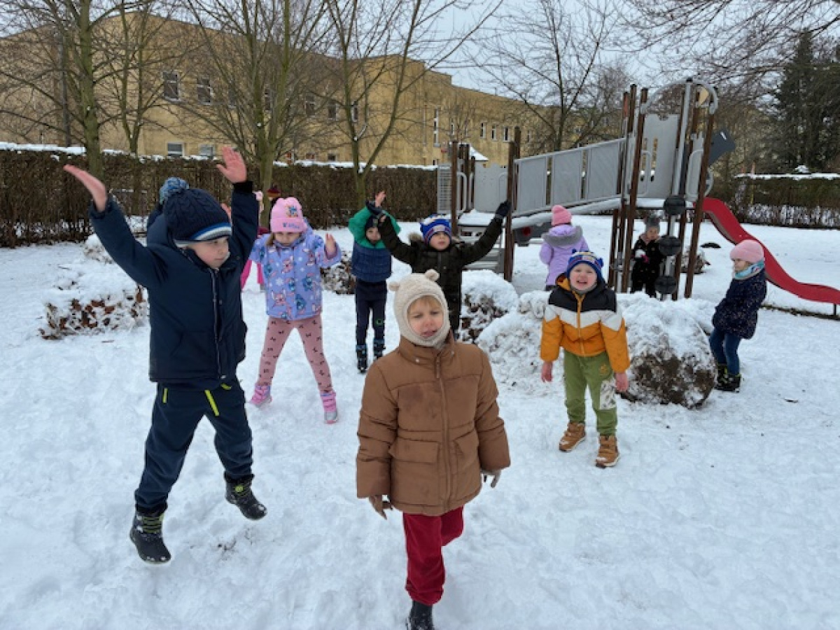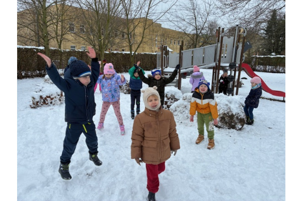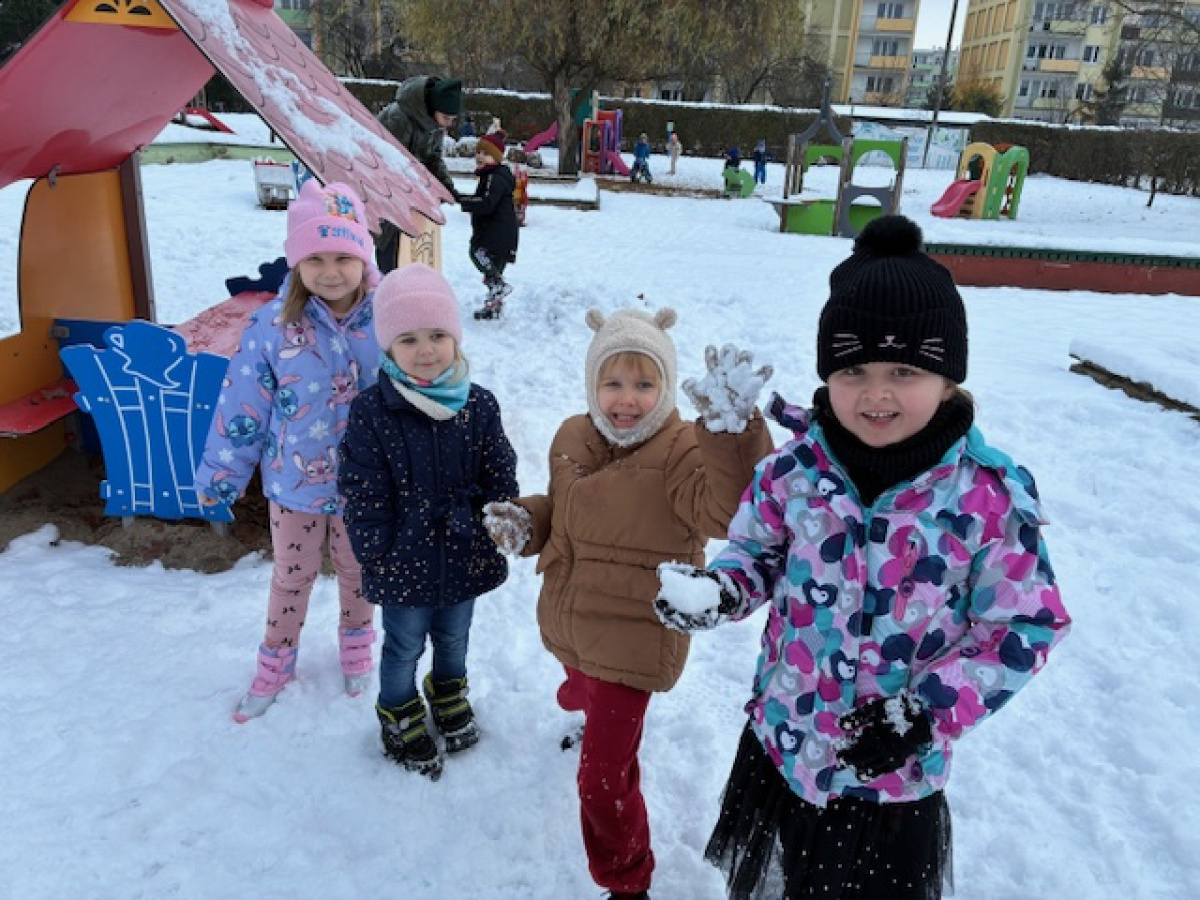 Doczekaliśmy się, mamy śnieg! A każdy przedszkolak wie, że zabawy w śniegu są najlepsze! Lepiliśmy bałwana, rzucaliśmy śnieżkami, a gdy trochę zmarzły nam łapki zrobiliśmy zimową rozgrzewkę. Jak jest śnieg to trzeba korzystać, bo nigdy nie wiadomo, kiedy znowu się pojawi. Było super, do następnego.