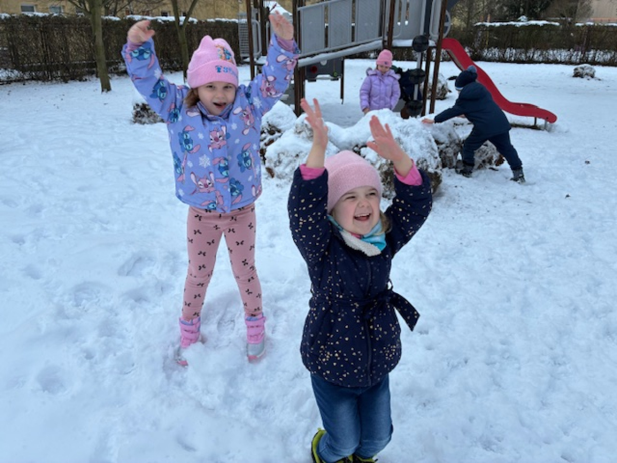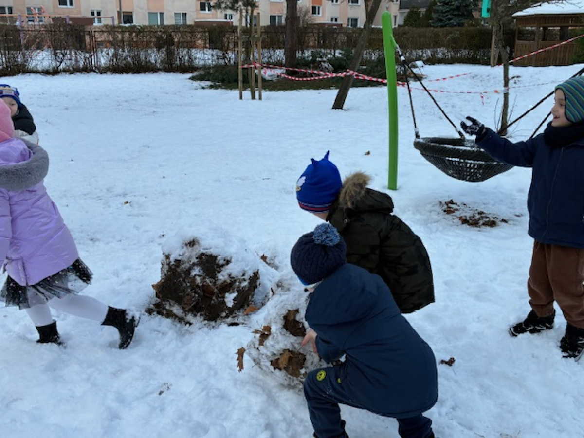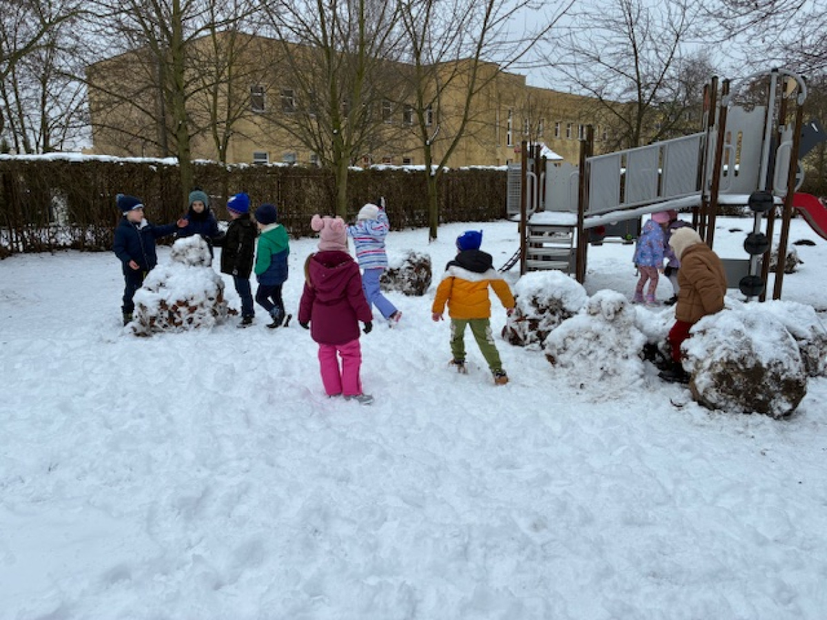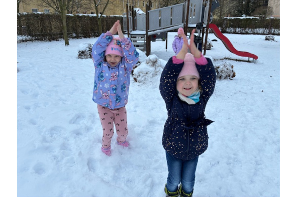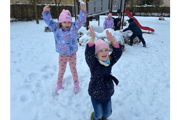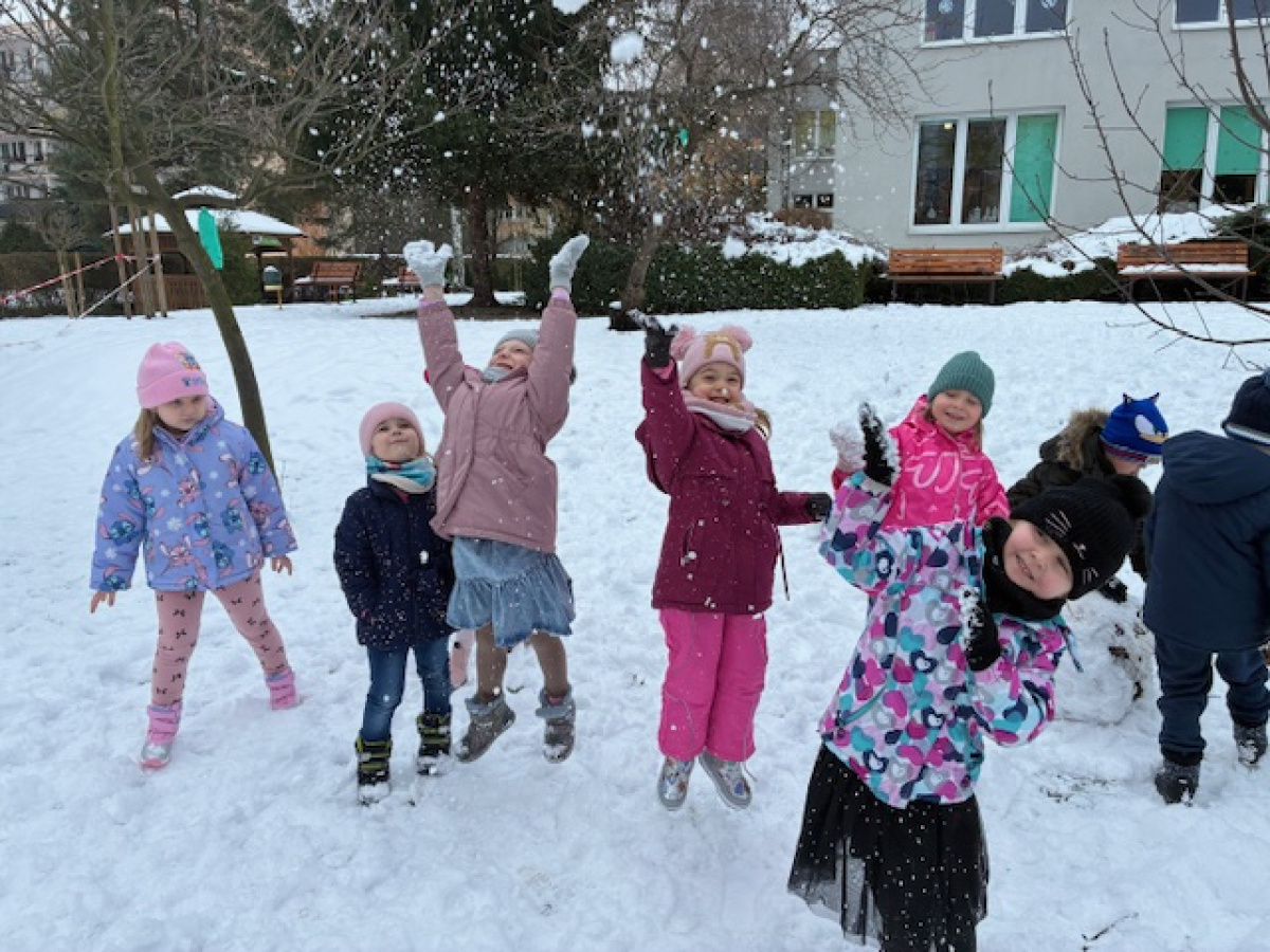 Doczekaliśmy się, mamy śnieg! A każdy przedszkolak wie, że zabawy w śniegu są najlepsze! Lepiliśmy bałwana, rzucaliśmy śnieżkami, a gdy trochę zmarzły nam łapki zrobiliśmy zimową rozgrzewkę. Jak jest śnieg to trzeba korzystać, bo nigdy nie wiadomo, kiedy znowu się pojawi. Było super, do następnego.
