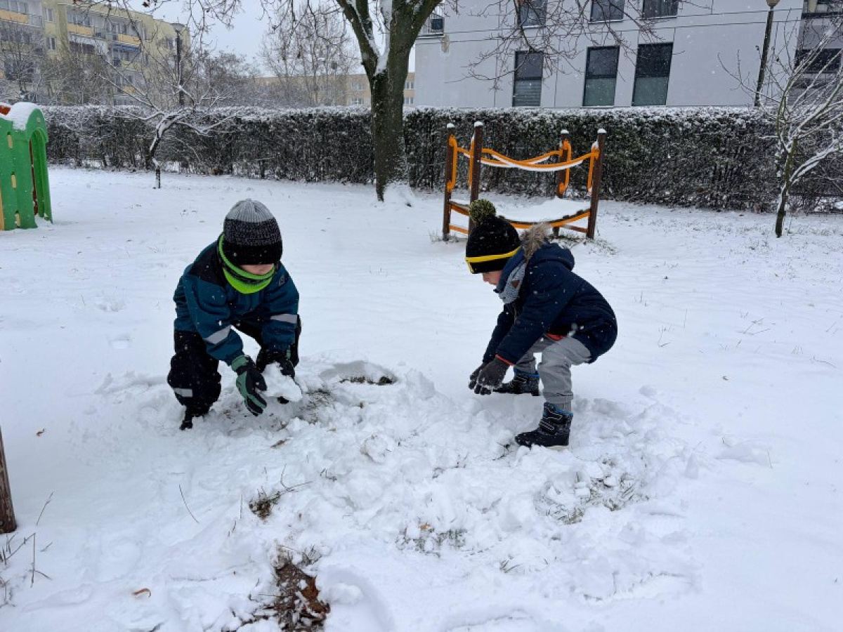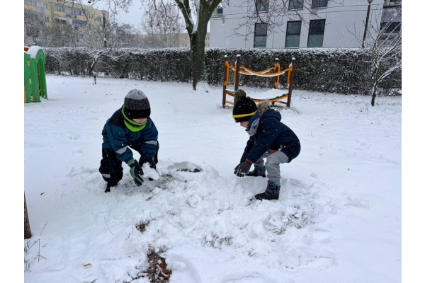 Z zimą tak już jest, że przychodzi, kiedy najmniej się tego spodziewamy. Mimo, że obfite opady śniegu nie pozwoliły wyjechać Krecikom do Torunia pogoda ducha nas nie opuściła. Postanowiliśmy, że wykorzystamy ten dzień najlepiej jak potrafimy! W związku z tym ubraliśmy się w ciepłe buty i kurtki, a następnie ruszyliśmy czerpać radość z zabaw na śniegu.