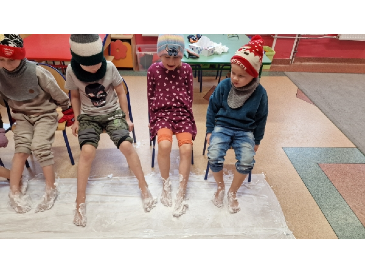 Kiedy zima na dworze nie pozwala nam na spędzanie czasu na dworze, to decydujemy się zrobić zimowe zabawy w sali. Świetliki i Kreciki poślizgały się na ślizgawce i pobawiły w sztucznym śniegu. To była niezła zabawa!